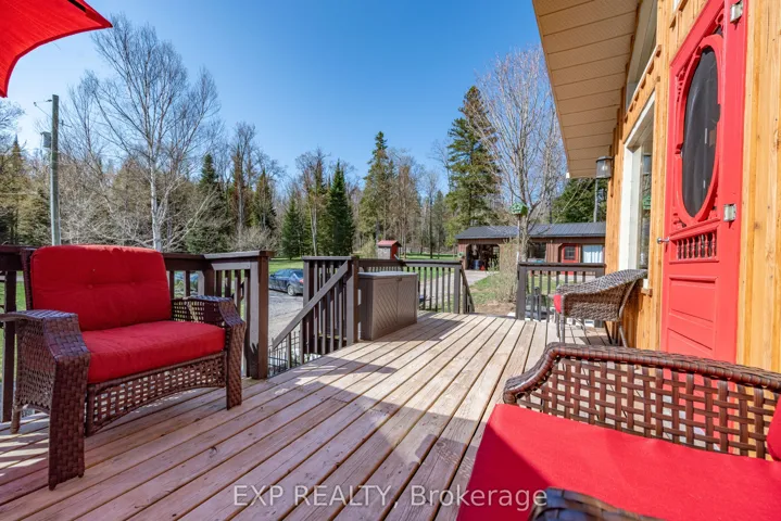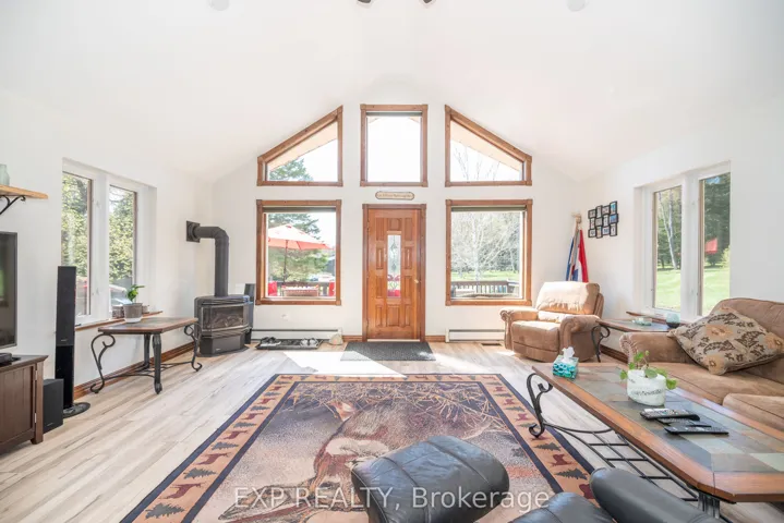 +"PublicRemarks": "Your oasis of dreams awaits your arrival. A hot tub for those star gazing nights, a huge shop for those many projects to complete or invent. A network of trails to hike, atv, snowmobile or even horseback ride. The trees not only allow for the recreational aspects but many maples invite syrup harvesting in the spring. A babbling brook flows through the property and is populated with brook trout for those awesome morning breakfasts. You can hike or atv back to the clearing on the hill where at night you can see the moon or gaze at the heavens above. The 197 acre land houses many wildlife species including white tail deer, moose, ruffed grouse, wild turkey, rabbits, and those other animals who make the forest their home. Firewood abounds throughout and there is opportunity for marketable timber. A main floor of extravaganza to dine or entertain distinguished guests and a downstairs of leisure and fun. A wine cellar is tucked away under the stairs for those special nights or occasions. Privacy like no other and still within minutes to the amenities the village of Bancroft beholds. Three garage spaces to house your toys or keep your special auto in the new 60x40 garage including 16ft ceilings, from the elements. The garage located left to the house encompasses a bunkie to keep your special guests comfy and warm. Also equipped with propane Generac generator, air conditioning by two heat pumps, and outdoor wood fired boiler to keep you acclimatized no matter the outside weather. This property has the ultimate of enjoyment for the activities that few get to realize."