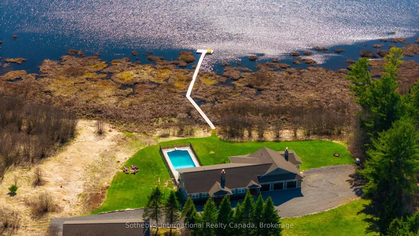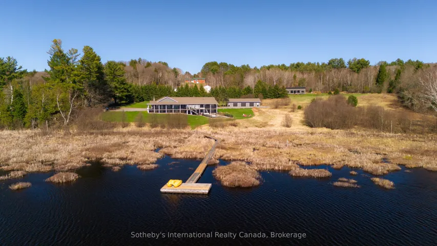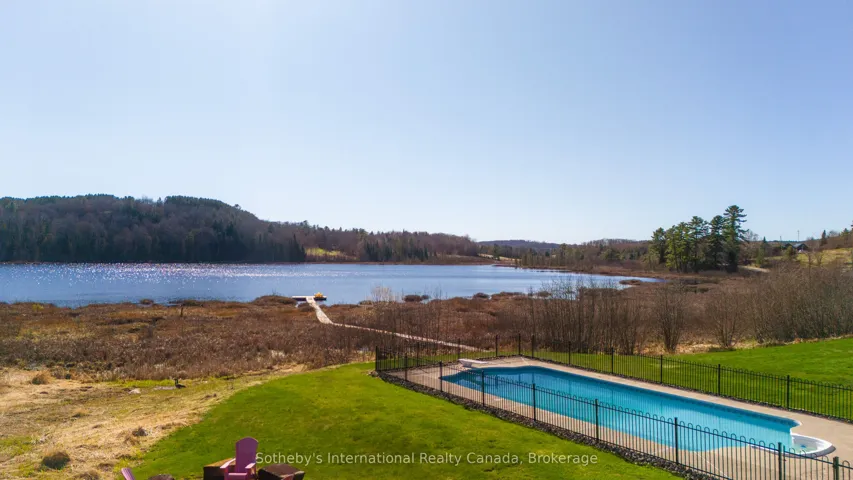+"PublicRemarks": "TURNKEY! Approximately 5000 sq ft of living space. Welcome to your private Muskoka retreat, perfectly positioned on 4.92 acres with 675 ft of pristine shoreline and southwest exposure on quiet Weeduck Lake. Just mins from Huntsville, this property offers a rare blend of privacy, comfort, and convenience, which is ideal as a seasonal escape or a full-time residence. This thoughtfully laid-out home features 3 bedrooms on the main level and 4 additional bedrooms on the lower level. A self-contained one-bed, one-bath in-law suite offers privacy for guests or extended family. The open-concept kitchen features a granite island, double wall ovens, and an oversized fridge and freezer, flowing into the Muskoka room and a dining area with built-in cabinetry and a charming brick fireplace. Step outside to the covered deck, perfect for dining or relaxing in all seasons. Enjoy a spacious family room with a gas-fired stove and a dedicated games room on the lower level. Walk out to your stone patio and private hot tub, or unwind by the sparkling inground pool, set against a lush forest backdrop. In addition to the attached 3-car garage, a separate detached 3-car garage (1,350 sq ft) adds ample space for recreational gear or workshop use. Recent upgrades include a new septic system (2025). Other home systems include on-demand propane water heater, UV water filtration system, water softener, and central air. At the water's edge, a 200-foot dock invites swimming, paddling, or fishing with stunning sunsets across the lake every evening. This is Muskoka living."