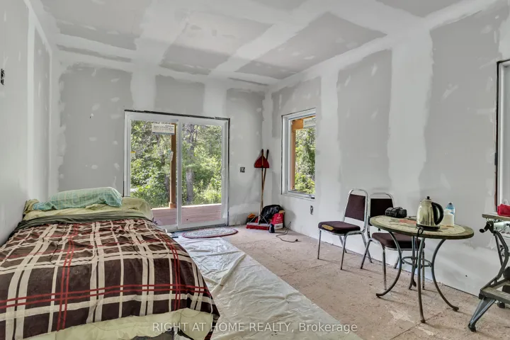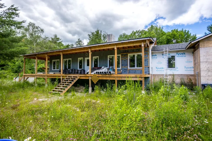 +"PublicRemarks": "Please note that the home is not finished however the floor plan is attached to the listing.This property is truly a nature lover's dream. The home, although not finished, will allow for a spacious entertaining room which would be comprised of kitchen, dining area and living room complete with a walkout to the deck which surrounds the home. Two large bedrooms share a spacious bathroom and both rooms have large windows overlooking the property. There is a space for a second 4 piece bathroom for guests, a laundry room and a utility room. An oversized double garage with one rear access also provides easy access for your use. Basement has 9 foot ceilings and is ready for the discerning buyer to finish to his own taste. Board and batten siding completes the exterior finish. The wrap around deck offers multiple views and access to the property. The entire home is spacious and ready for a new buyer to finish and make his own! Located to the south of the house is a huge steel garage - store your toys or create your own space. The property consists of two separate lots which abut each other on the west side. There are many trails to explore and wildlife to observe on this approximately 257 acre property. This location is excellent as you have your own private forest and yet you are 15 minutes to the town of Norwood which offers all the amenities-schools, bank, grocery store, drugstore, library, rec centre, arena and more. Easy access to Peterborough and the GTA"