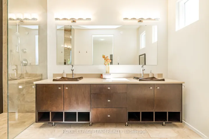 +"PublicRemarks": "Welcome to a one-of-a-kind estate where timeless elegance, refined craftsmanship, and natural beauty come together. Tucked away on a secluded, professionally landscaped lot in the exclusive Kanata Rockeries, this 6-bed, 5-bath custom home offers over 5,100 sq ft of exquisitely designed living space. An architectural masterpiece by Richard Limmert, built by esteemed Terra Nova Building Corp. This exceptional home blends luxury and lifestyle seamlessly. Surrounded by lush gardens, water features, and mature trees, the setting feels like a private resort. Multiple patios and decks offer perfect vantage points for enjoying the saltwater infinity-edge gunite pool, cozy fire pit, and even a charming winter skating pond. Step inside to soaring 12-ft ceilings and a light-filled open-concept layout. The gourmet kitchen features an oversized island, granite countertops, and flows effortlessly into the dining and living areas ideal for entertaining. Phantom-screened doors open to peaceful views and fresh air. The primary suite is a tranquil retreat, with a walkout to a private patio, automated retractable privacy screens, a spacious walk-in closet, and a spa-like 5-piece ensuite with quartz counters, heated floors, and a rain shower. The fully finished walk-out lower level includes radiant in-floor heating, a stylish wet bar with fridge and dishwasher, private theatre room, at-home gym, and a mudroom with a built-in dog shower. Step outside directly to the pool and beautifully landscaped backyard. Smart features like a built-in generator, advanced irrigation, and snow-melting roof cables ensure year-round comfort and convenience. This is more than a home, it's a lifestyle. Where every detail has been curated for living beautifully, indoors and out. Nestled in the prestigious Kanata Lakes community you are close to all amenities and high ranking schools while being surrounded by nature and wildlife!"