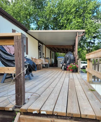 +"PublicRemarks": "Welcome to easy, affordable living in this charming and well-maintained home nestled in Lakewood Estates, a quiet community with friendly neighbours. This is a thoughtfully designed home that is both functional and stylish with more than 1000 square feet. The main living space seamlessly flows one room into the other. The two private bedrooms are situated at either ends of the home. Tucked between them is an inviting living room with a stunning propane-fueled stone fireplace that adds warmth and character all year round and means the baseboards need minimal use. Right in the heart of the home, you'll find the fully renovated kitchen and dining rooms with an abundance of practical cupboard and counter space and with the sweetest coffee nook. This home also has a spacious addition that ties the rooms together nicely. The sun filled family room was added off the kitchen and leads to a large deck, both spaces enjoy a delightful southern exposure. The deck has a gazebo, for shade and comfort that is included. This home also has 2 parking spaces, mature gardens, the privacy of trees and no neighbours in front, and a storage shed with electricity. The land lease conveniently covers taxes, management, water, septic maintenance, and area caretaking including street snow removal. This home is steps away from Mississippi Lake and all the beauty that natural gem affords. This property offers low-maintenance living in a peaceful setting. Book your private viewing today!"