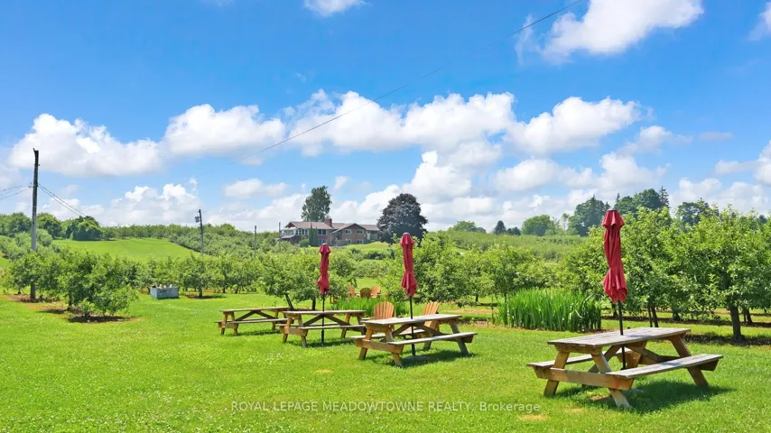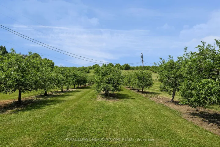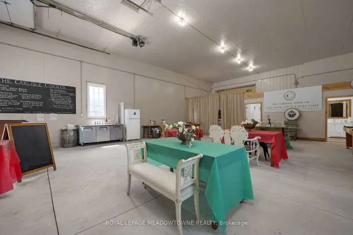 +"PublicRemarks": "This extraordinary countryside estate set on 37.68 gently rolling acres in one of Carlisle's most desirable and emerging rural communities. Located on a quiet paved dead-end road, this Apple Orchard and Licenced Cidery property offers exceptional exposure and access to the vibrant agri-tourism activity of the area. A destination for cyclists, tourists, and day-trippers from Toronto and U.S. border, this scenic setting supports both lifestyle and income-generating uses. 28 +/- acres planted apple orchard with 8+/- acres for vegetables, sunflowers, lavender, hops or other specialty crops. The fully licensed cidery, distillery & retail space, plus a sprawling 3+2 bedroom raised bungalow perched on a hill with panoramic views of the countryside and orchard. Ideal for multigenerational living, staff housing, or as a rental income opportunity, the residence offers 3,700+ SF of finished space. The main level is carpet-free with hardwood and tile flooring, and features a spacious eat-in kitchen with walk-out, formal dining & living rooms with a wood-burning fireplace. The principal includes a private 3-pc ensuite. Updated windows, pot lights, central air, central vacuum, and a forced air furnace (2021) provide modern comfort. The finished basement offers 2 additional bedrooms & bathroom with above-grade windows, an office, and a walkout to an enclosed hot tub room perfect for extended family or guest/farm help accommodation. The attached 2 car garage adds to the convenience, while recent shingles (2023) enhance peace of mind. The fully licensed cidery, distillery, retail & storage with 15-ft ceilings, shipping, washrooms & ample paved parking. The distillery has cold storage plus more insulated, heated space with drive-in doors for a wide range of permitted uses. Bell Fibre, liquor licenses, wholesale & retail network, make this a multi-purpose investment. Live, work and grow all in one place while also having the flexibility to support income or farming-related uses."
