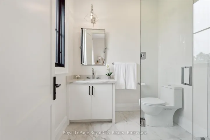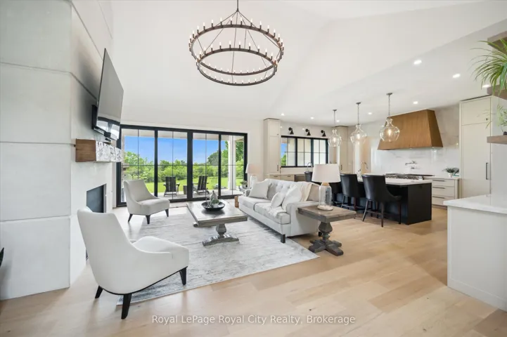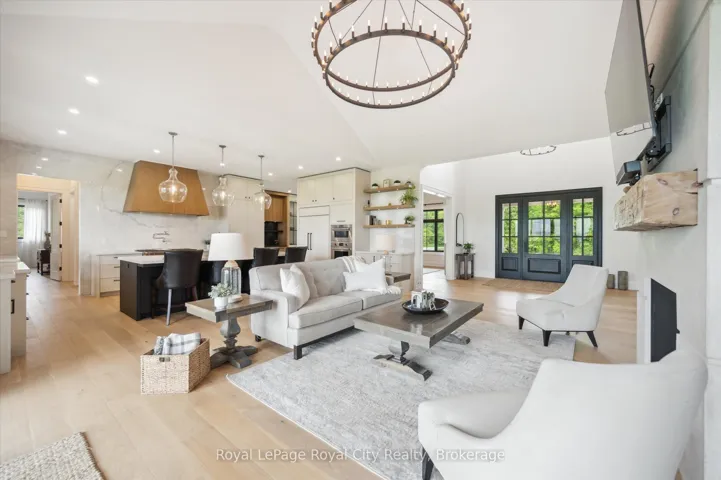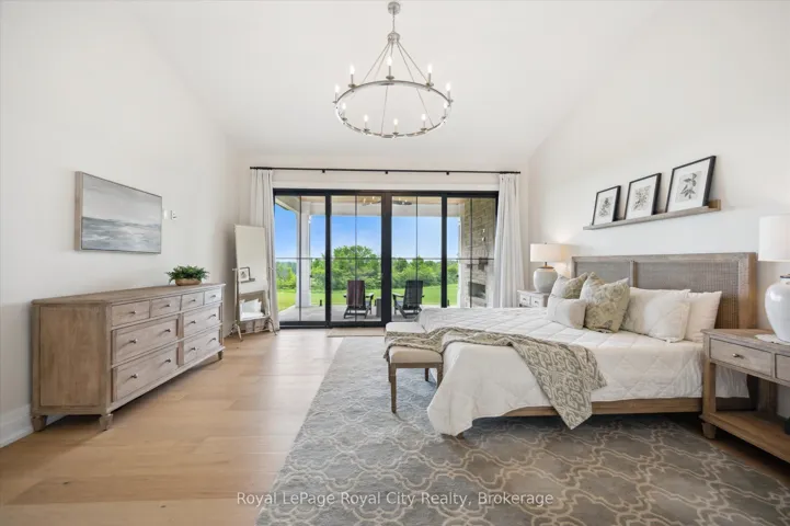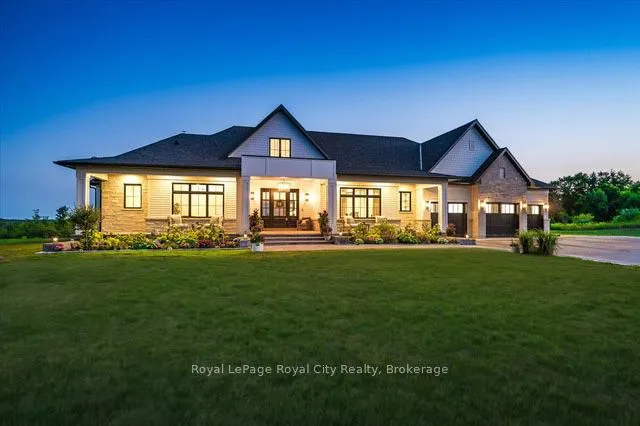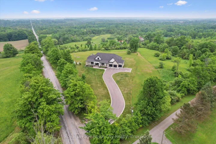 +"PublicRemarks": "Custom-Built Luxury Bungalow on 2.4 Private Acres with Escarpment Views. Welcome to this one-of-a-kind custom-built bungalow offering 3,400 sq. ft. of refined main floor living space, perfectly nestled on 2.4 acres of serene countryside. With panoramic views of the escarpment and set well back from the road, this residence offers exceptional privacy while being just 20 minutes from the 401. Designed with luxury and functionality in mind, the home boasts soaring ceilings and oversized windows, creating an expansive, airy ambiance throughout allowing the natural landscape in and flooding the home with light. The main level features a seamless open-concept layout anchored by a great room and primary bedroom with oversized sliding doors opening to an extended outdoor living space with a two sided fire place, hot tub, and an abundance of entertaining space. The heart of the home is a chefs dream kitchen outfitted with top-tier Wolf, Sub Zero, and Cove appliances, complemented by a stylish servery just off the formal dining room. Retreat to the spacious primary suite, a true sanctuary offering an oversized spa-inspired ensuite complete with heated floors, a large walk-in shower, water closet, luxurious soaker tub, dual sinks with an extended vanity, and a generously sized walk-in closet. Two additional bedrooms on the main floor each enjoy their own private ensuites. Downstairs, the wow factor continues. The 10-foot ceilings and expansive windows make the finished basement feel anything but below grade. Designed for versatility, the lower level includes a full gym, sauna, and a private entry from the oversized 3-car garage making it perfect for an in-law suite. This separate living space features a bedroom, full bath, and kitchenette with a fridge, sink, and microwave. Every detail has been thoughtfully considered. Truly, this is a rare opportunity to own a stunning estate home where luxury, privacy, and convenience converge."