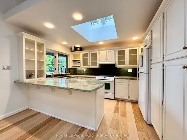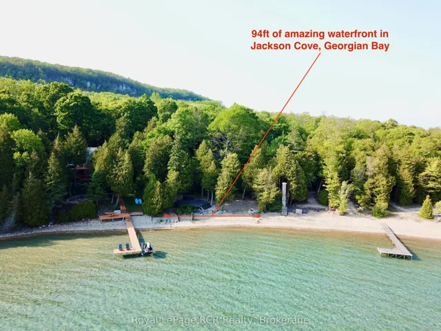 +"PublicRemarks": "Architecturally UNIQUE, custom 4-SEASON WATERFRONT PROPERTY in EXCLUSIVE JACKSON COVE on Georgian Bay. This HEXAGON-INSPIRED Contemporary Design offers 4 bedrooms, 3 bathrooms, OPEN-CONCEPT LIVING SPACE featuring a CUSTOM VAULTED WOOD CEILING with skylights and simply stunning TIMBER FRAME structure. Natural Stone fireplace in full view of living room, dining room & kitchen areas. Updated MODERN KITCHEN with granite counters, breakfast bar & water views. MASTER with ENSUITE and WALKOUT to private patio. Lower Level walkout with Circular Staircase & Custom Tin Ceilings offers separate living space, including Family Room & 4th bedroom with water views, finished laundry room & 3pc bathroom. HUGE INSULATED STORAGE area with overhead door to waterside, 2,300+ sq ft of living space on two levels. Outside, this 3/4 ACRE property offers ELEVATED DECKING w/COVERED OUTDOOR LIVING SPACE, composite decking w/glass wall railings. BEAUTIFULLY LANDSCAPED w/stone walkways, many mature trees for AMAZING PRIVACY, and 94 FT OF PRIVATE GEORGIAN BAY SHORELINE in Jackson Cove! A CUSTOM HEXAGONAL WATERSIDE DECK w/cabana & HOT TUB. Incredible, crystal-clear waters protected from open Georgian Bay wave allow for seasonal BOAT DOCKING and A SAFE WATERFRONT for all types of WATER ACTIVITIES. Jackson Cove offers STUNNING NIAGARA ESCARPMENT VIEWS, walk to BRUCE TRAIL w/300ft high lookouts above the Cove ... simply no better location on the Bruce Peninsula! 10min drive to Lions Head (shopping, hospital, marina, school etc), 45min to Tobermory, 35 min to Sauble Beach and less than 3hrs from GTA & Southern Ontario. This is truly a SPECIAL WATERFRONT PROPERTY that MUST BE SEEN to truly appreciate."