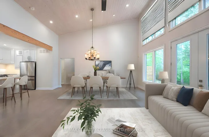 +"PublicRemarks": "Welcome to your dream retreat on the shores of Bow Lake where luxury meets tranquility in this stunning five bedroom, three and a half bathroom, four season home. Perfectly positioned on a private cul de sac, with a west facing orientation, you'll savor breathtaking sunsets over the water, creating a picture perfect backdrop for your evenings. Crafted with high end finishes and appliances, this home showcases refined elegance in every detail. The spacious, open concept design allows for seamless entertaining, while large windows bring in natural light and offer panoramic lake views. A gourmet kitchen equipped with top of the line appliances and custom cabinetry makes cooking a delight, while cozy yet sophisticated living spaces feature a fireplace to keep things warm in cooler months. On the main level the Great Room and Kitchen with walk in pantry provide ample space for family and guests, while the primary suite offers a luxurious private retreat, complete with an ensuite spa like bathroom. An additional two bedrooms, four piece bathroom, laundry room as well as a half bathroom are designed with premium fixtures and elegant finishes, ensuring comfort and convenience. Downstairs, on the lower level, you will find a large recreation room, two additional bedrooms, a gym, an office, utility room and three piece bathroom. Step outside to experience true lakeside living whether it's from the expansive deck, the beautifully landscaped yard, or the private waterfront. The access is perfect for boating, swimming, or simply relaxing by the shore. The attached over sized two car garage offers plenty of space for vehicles and storage, making it easy to enjoy every season in this exceptional home. Located just ten minutes from Bancroft, ON, you'll enjoy the perfect blend of peaceful lake living with access to nearby amenities, charming shops, and outdoor adventures. This home is more than just a residence, it's a lifestyle waiting to be embraced."