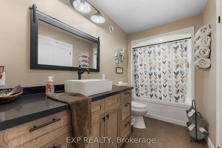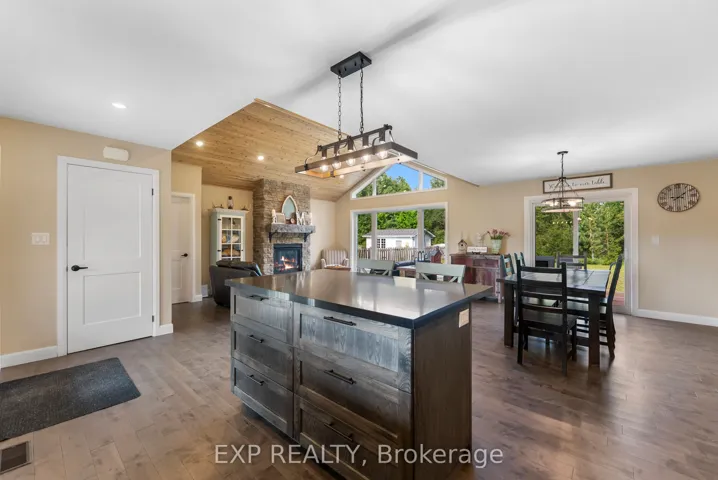 +"PublicRemarks": "Prepare to be amazed by this stunning craftsman-style home that seamlessly blends modern farmhouse aesthetics with functional design. This 3-bed, 2-full-bath residence features custom ash cabinetry in the kitchen, complemented by elegant quartz countertops and stainless steel appliances. The kitchen opens up to a spacious dining and living area, adorned with hardwood floors and a beautiful propane-fired fusion stone fireplace, complete with a 100-year-old barn beam mantle. This inviting space overlooks a generous backyard, perfect for outdoor enjoyment.The master suite, located on one wing of the home, boasts a large walk-in closet and a three-piece ensuite bathroom. On the opposite wing, you'll find two additional spacious bedrooms, each with ample closet space, as well as a shared three-piece bath. Conveniently, the laundry is located on the main level, providing easy access to the large two-car garage. Don't miss the bonus loft space, which offers endless possibilities for customization. The lower level is also a blank canvas, allowing you to design it to your liking. Nestled in a quiet neighbourhood, this home is just a short walk from all amenities, with schools of all levels nearby. The western-facing backyard provides exceptional opportunities for relaxation and evening entertainment. Enjoy year-round recreation right at your doorstep. Spend your days boating, paddling, or fishing on beautiful Kamaniskeg Lake, with a public boat launch conveniently located in town. Explore nearby ATV and OFSC snowmobile trails, or add some thrill with whitewater rafting on the Madawaska River. Tee off at the golf course in Killaloe, unwind at local beaches, or discover the areas many scenic hiking and biking trails. Whether you're seeking outdoor adventure or small-town serenity, Barrys Bay offers a warm, nature-rich lifestyle. With excellent schools and a growing healthcare facility, this vibrant community supports both leisure and everyday living."
