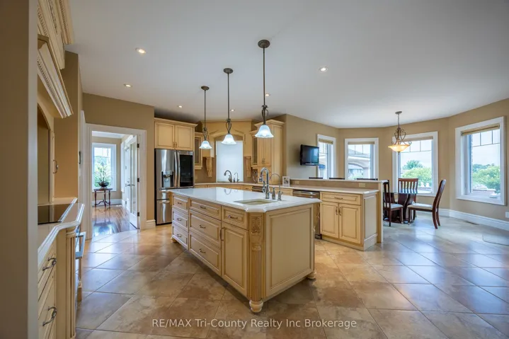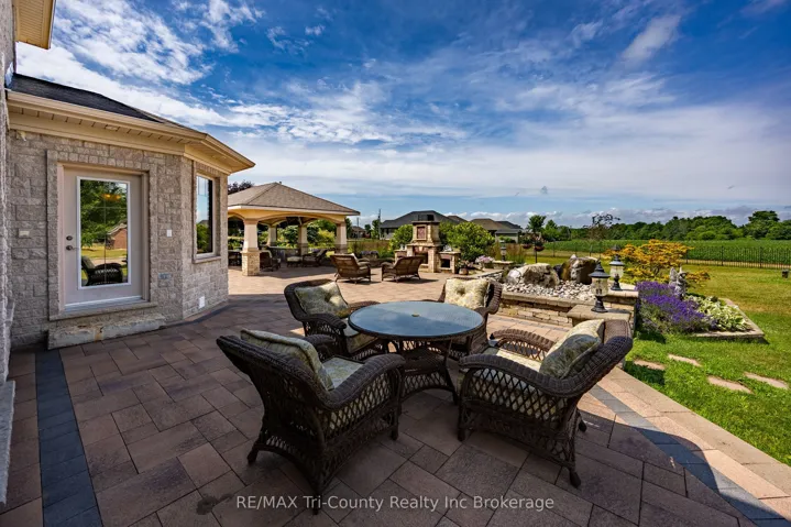 +"PublicRemarks": "Luxurious Estate with outdoor living oasis, dual garages and premier security. Welcome to your dream home. An exquisite estate that perfectly balances luxury, privacy, and everyday functionality. Designed for both families and sophisticated entertaining, this executive home offers spacious, thoughtfully planned living areas. As you enter the grand foyer a striking spiral staircase serves as a dramatic architectural focal point, leading to three generously sized bedrooms and two elegant bathrooms. Two floor-to-ceiling gas fireplaces enhance the ambiance in both the family room and formal living room, providing warmth and style. The formal dining room offers a warm and elegant space for family gatherings and entertaining guests, with room for a large table and decor suited to any occasion. A versatile den/home office provides a quiet and private area, ideal for working from home, studying, or managing daily tasks designed for comfort and productivity in mind. At the heart of the home, the expansive kitchen impresses with built-in appliances, quartz countertops, a walk-in pantry, breakfast bar, and a sun-filled dining area. The lower level boasts heated floors throughout the recreation room, games room, and bathroom ensuring year round comfort. Walk-up from basement to garage. The exterior is equally remarkable, featuring professionally landscaped grounds, a wide circular interlocking brick driveway and a stately brick facade that leaves a lasting first impression. The backyard is designed for connection, with multiple gathering area and a bubbling rock water feature. Water gently bubbles from the tops of three hand-selected stones, creating soothing sounds and a peaceful atmosphere an eye-catching focal point that blends naturally with the surrounding greenery. Enjoy dining in the covered, custom-built outdoor kitchen. The additional detached garage/shop offers extra space for vehicles, workshop or custom storage solutions."