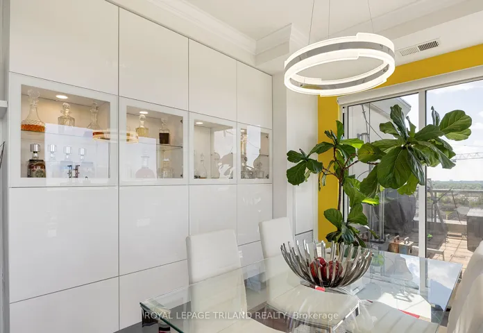 +"PublicRemarks": "Stunning corner penthouse condo on 14th floor facing south/west/north. Wonderful views! This 3 bedroom plus den offers 4 terraces/ balconies, storage unit (owned) and 3 very rare underground own parking spots. The building amenities include a guest suite, media room, exercise room and billiards room. Location is handy for Western University, hospital, shopping, golf, park and restaurants. Primary bedroom has large ensuite and Neiman Marcus system in the walk-in-closet and access to a terrace. The second bedroom is currently used as an office with lovely built-in book cases with glass doors. The third bedroom has the same lovely built-ins. The den is currently set up as a huge walk-in-closet. The laundry/ storage room is a good size with storage units. Enter through the custom glass doors to the open concept living, kitchen, dining which is perfect for entertaining with access to the 45' terrace with ample room for your BBQ and outdoor furniture and plants. The kitchen has a large granite island, wine fridge, stainless appliances. All windows have custom window blinds. Walk-in pantry, gorgeous light fixtures, no carpet."