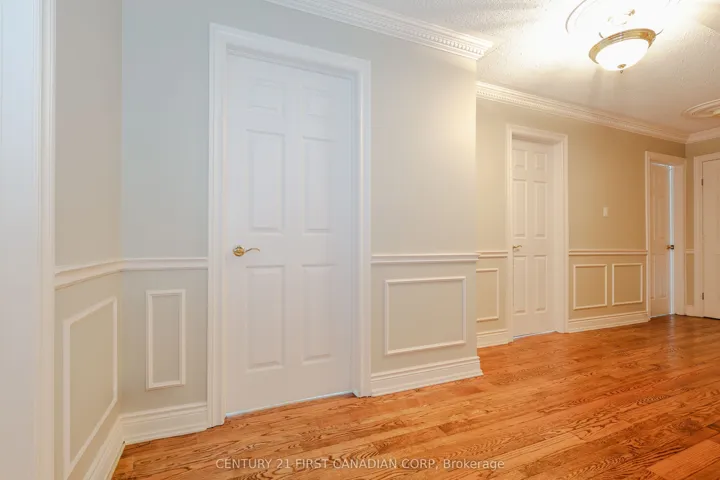 +"PublicRemarks": "A Rare find! 0nly 30 minutes from London! Approximately 10 Acres + beautiful solid custom built 5 bedroom, 6 bath home with 4 CAR garage, finished lower and 3rd floor loft all on paved country road with easy access to HWY 402 and all amenities in lovely town of Strathroy! Custom designed and built home by the current owner, this sprawling and light filled home boasts over 6000sf of finished living space & quality workmanship throughout. Ideal for large or growing family looking for room to roam in a beautiful & picturesque country setting! Features: tasteful neutral wall colours, gleaming oak floors, custom dentil crown moulding, quality Pella windows throughout with amazing views from all angles of the home, formal living and dining rooms, main floor office with custom oak built-ins, main floor family room, large eat-in kitchen, main floor sunroom, main floor laundry & 2 main floor baths; amazing 2nd floor layout with 5 bedrooms (one features adjoining bonus room with 3 walls of windows) & 3 bathrooms including massive primary bedroom with 5pc ensuite, dressing area & vanity, coffee bar & private east facing sunroom; a custom spiral staircase accesses the 3rd level loft ideal for play room, media room, gym or even Yoga room! Need more space? then check out the huge finished lower level with 3pc bath, rec room, 2 dens, ample storage and garage access! The exterior features huge patio, plenty of parking and priceless views year round! Added highlights: energy efficient heating/cooling, owned hot water heater, drilled well, central vac system & more. Approximately 46 workable acres are rented. Easy access to London & Sarnia via HWY 402 + on route to Lake Huron beaches north on HWY 81."