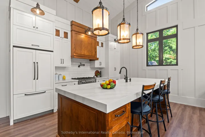 +"PublicRemarks": "Welcome to your secluded Muskoka hideaway nestled amidst towering pines and the rugged beauty of the Canadian Shield. This just-built custom 4-bedroom fully furnished bungalow offers unparalleled privacy on a sprawling 4.32-acre lot. Step inside to discover a thoughtfully designed open-concept layout, where the kitchen, dining, and living areas flow effortlessly together. The kitchen boasts custom 10' high cabinetry, quartz countertops, and a farmhouse-style island sink, while the adjacent living room features a cozy propane fireplace framed by floor-to-ceiling surround and a convenient bar cabinet with quartz countertops and bar fridge. Retreat to the primary bedroom suite, complete with a 4-piece ensuite, vaulted ceiling, and private walkout to the deck, offering a quiet spot to enjoy your morning coffee amidst the trees. Three additional bedrooms provide ample space for family or guests, while a 4-piece main bath and 2-piece powder room ensure convenience for all. Outside, the expansive deck beckons for al fresco dining and relaxation, while a covered porch at the back offers shelter in any weather. For the ultimate in versatility, a detached 3-car garage with a loft provides additional living space, complete with a bedroom, 3-piece bath, and living area, perfect for guests or a home office. Never worry about power outages with the property's large Solar Grid, 12kw inverter, 20kw Batteries and 22.5kw auto start propane Generac Generator, ensuring peace of mind year-round. With ample room to roam and explore, you can create your own trails through this wilderness retreat, embracing the true essence of Muskoka living. Conveniently located near several lakes and Georgian Bay, outdoor enthusiasts will delight in endless opportunities for boating, fishing, golfing, skiing, and snowmobiling, while nearby stores and restaurants offer all the amenities you will need. Seller will consider a VTB to qualified buyers."