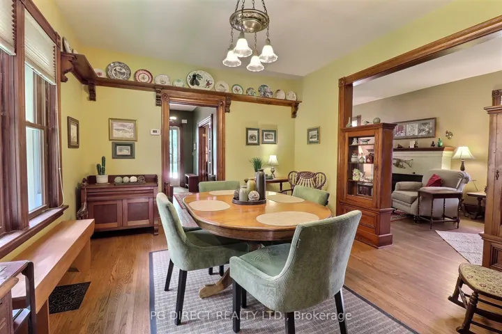 +"PublicRemarks": "Visit REALTOR website for additional information. This beautifully maintained Century Home offers timeless character and excellent income potential. Ideally located near downtown Strathroy, Alexander Park, and the Rotary trail, it's perfect for investors, multi-generational living, or owner-occupiers. The main level features a large foyer, living room with gas fireplace, formal dining, galley kitchen, 4-pc bath, bedroom, and sunroom. The upper level has a separate entrance, kitchen, 3-pc bath, 3 bedrooms including a spacious principal and a sunroom with balcony. Outside offers a covered front porch, private backyard with deck, detached 2-car garage/workshop, irrigation system, and new metal roof (2024). Period details throughout original hardwood floors, wide baseboards, intricate wood trim, solid wood doors, and a stunning stained-glass window make this home truly unique!"