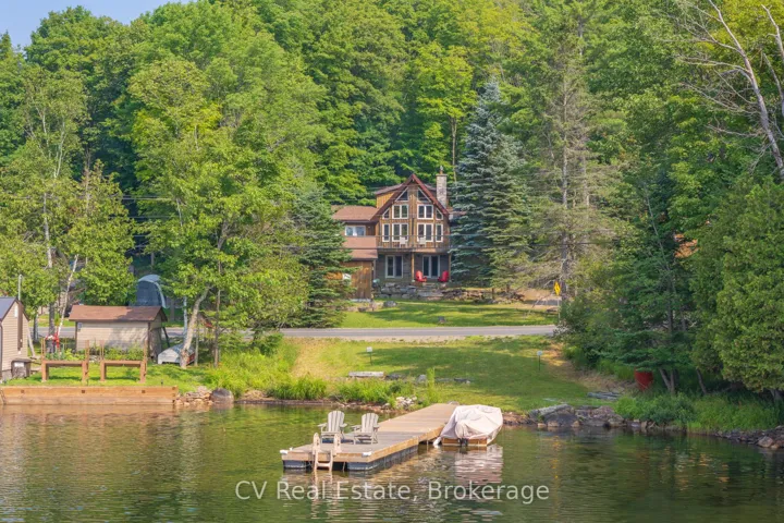 +"PublicRemarks": "Tucked into a peaceful, tree-lined setting with stunning southern views over Lake of Bays, this charming 4-bedroom, 3-bath Viceroy-style home or cottage offers over 2,750 sq.ft. of thoughtfully updated living space. Inside, soaring ceilings and wall-to-wall windows invite the outdoors in, while a reimagined kitchen, warm wood accents, and a striking stone fireplace create a welcoming atmosphere year-round. The main level includes two comfortable bedrooms, a full bath, and a spacious laundry room, while the upper loft-style suite offers lake views, a walk-in closet, a private ensuite, and access to a brand new balcony deck the perfect spot for morning coffee. Downstairs, the walkout level features a granite-tiled rec room with a woodstove perfect for cozy evenings after a day on the trails around Lake of Bays or the lake. This home is as functional as it is beautiful, with a number of recent upgrades that add peace of mind: a new septic pump and line, a new well pump, air conditioning, and the finalized purchase of the Shore Road Allowance and survey. Outside, enjoy a brand-new crib dock and floating dock that enhance your private sand waterfront experience just across the cottage road. A rebuilt triple garage offers abundant space for vehicles, recreational gear, or a workshop setup. Whether you're searching for a weekend escape or a full-time lakeside lifestyle, this property is an opportunity on one of Muskoka's most desirable lakes. Book your private tour today and start your next chapter at the lake."