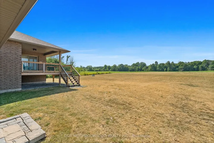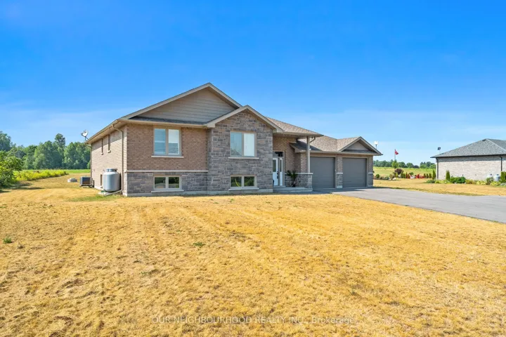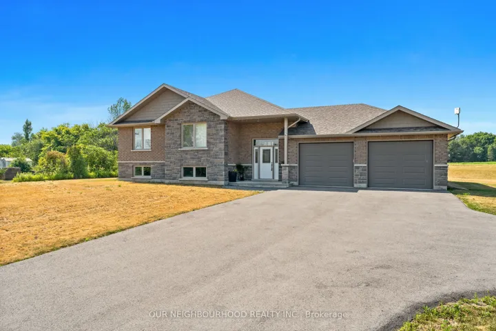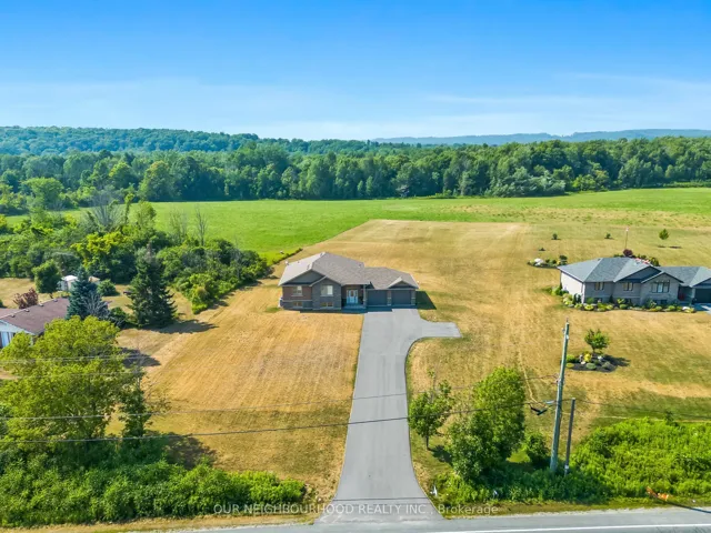 +"PublicRemarks": "This beautiful raised bungalow, set on a picturesque 1.5+ acre lot was built by a respected local builder known for fine craftsmanship. With a striking brick and stone exterior, an attached 2-car garage, and a paved driveway with a turnaround, this home makes a lasting first impression.Step inside to the handsome entry foyer before heading up to the open-concept main floor living space. There you will find the grand custom kitchen, spacious living area with a stone fireplace, and a dining area with a walkout to a covered rear deckperfect for outdoor entertaining. California-style shutters adorn all main-floor windows, adding both elegance and privacy.The stunning primary suite overlooks the rear of the property and natural setting beyond. It has a large walk-in closet and a luxurious 3-piece ensuite with a custom walk-in shower making it feel like an oasis in your own home . Two additional generously sized bedrooms and a 4-piece bathroom complete the main level.The expansive unfinished basement is home to the large laundry area and offers endless possibilities, with a rough-in for a future bathroom and ample space to customize to suit your needs.Outside, the expansive lot provides plenty of room for family activities and future potential. Minutes to the charming town of Brighton and also City of Quinte West with shopping, big box stores and more. 6 Minutes to highway 401."