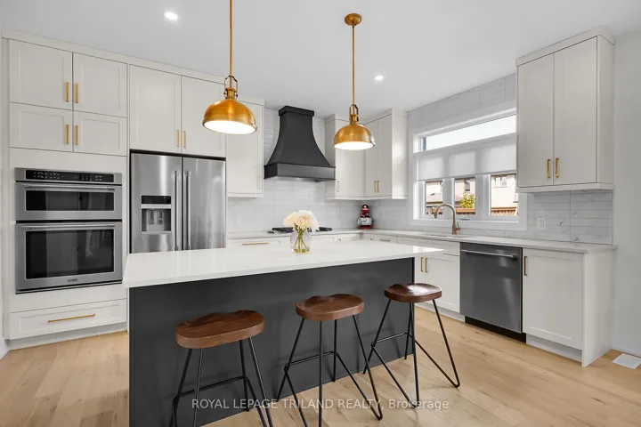 +"PublicRemarks": "This beautiful 4-bedroom home, boasting over 2,500 square feet of living space, offers a perfect blend of elegance and convenience. From the moment you arrive, the property's stunning curb appeal is sure to impress. Located just a short walk from the highly ranked Lambeth Public School, this residence is ideal for families seeking a welcoming community. The main floor features a den with a vaulted ceiling, creating an airy and spacious feel. A separate formal dining room provides the perfect setting for hosting dinner parties or enjoying family meals. The open-concept kitchen and living room are designed with modern living in mind, featuring high-end engineered hardwood flooring throughout. The kitchen is a chefs dream, equipped with a built-in oven, microwave, and a gas cooktop, complemented by beautiful lighting and quartz countertops. Large windows with transoms allow natural light to flood the space, enhancing its warmth and charm. The primary bedroom is a true retreat, offering a luxurious en-suite bathroom and a huge walk-in closet. Situated near the Lambeth shopping district, residents will enjoy easy access to a variety of shops, nice restaurants and golf course."
