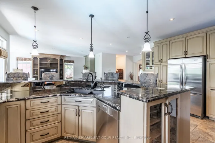 +"PublicRemarks": "Welcome to 228 Greti Drive, a custom-built luxury home nestled in one of Hamilton's most coveted neighborhoods. This beauty features over $300,000 in upgrades offering 3,212 sq. ft. of living space, 5+2bed/4 bath, highlighted by oversized closets /windows, upgraded trim, California shutters, glass railings, 9' ceilings, pot lights, and a dark walnut wood finish. From the moment you arrive, you can see the difference. A white marble stone on both sides of the driveway with manicured flowery globe plants, celebrity backyard, stone exterior, double-door entry, detailed curb appeal highlighted with a premium slate neutral garage doors add a sleek, secure finish. Inside, the main floor features a full walk-in coat closet, a private office, Dinning Rm and a breathtaking gourmet chef's open-concept kitchen. The kitchen is anchored by an impressive 9' island, high-end appliances, granite countertops, and custom glass sliding doors that open to a spectacular backyard retreat. Designed as the true heart of the home, the kitchen flows seamlessly into a sunlit great-room featuring elegant tray ceilings, a natural gas fireplace with custom-wall detailing. The exclusive laundry room completes the carefully crafted main level. Upstairs, 4 generously sized bedrooms await, including a luxurious primary retreat with a walk-in closet, a spa-inspired 5-piece ensuite featuring granite vanities, a glass-enclosed shower. Another standout feature is the expansive 13' x 14' walk-in closet, complete with custom-built cabinetry while the other bedrooms offer generous bright and airy living spaces. The finished lower level features a spacious recreation area, living room, 2 bedrms, kitchen, cold rm, a 4-piece bathrm, delivering a layout that defies the traditional bsmt experience. Built with high-end finishes and well maintained, this home is a must-see before considering any other property. Located as park-facing in a family friendly community, close to schools, shopping, and highway access."