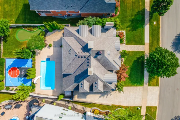 +"PublicRemarks": "Welcome to 3542 Matthews Drive - a stunning custom-built estate in one of Niagara Falls most prestigious enclaves. This meticulously designed home offers the perfect balance of refined elegance, comfort, and unforgettable outdoor living, all backing onto a serene ravine setting. From the moment you arrive, you'll be captivated by the grandeur and thoughtful layout of this residence. The main floor features a private home office with custom built-ins, ideal for professionals or those working from home. A sunken living room with a gas fireplace and expansive windows fills the space with warmth and natural light, while the open-concept kitchen is a chefs dream - complete with built-in appliances, an abundance of counter space, stylish storage solutions, and a peninsula breakfast bar perfect for entertaining. Upstairs, you'll find four generously sized bedrooms, each with massive closets, including a primary retreat with a spa-inspired ensuite that invites you to relax and unwind in luxury. The fully finished walk-out basement adds even more living space with a fifth bedroom, wet bar, dedicated guest area, ample storage, and direct access to the backyard. Step outside to your own private resort-style paradise, featuring a large in-ground pool with slide, hot tub, putting green, and a half-court basketball area - all set against a beautifully landscaped backdrop that backs onto a peaceful ravine. Additional highlights include a finished 4-car garage, classic finishes throughout, and a layout that blends sophistication with everyday functionality. This is more than a home - its a lifestyle. Don't miss your chance to own one of Niagara Falls finest properties. Luxury Certified."