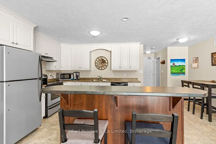+"PublicRemarks": "Look at this 2-bedroom, 2-bathroom top-floor unit. Youll enjoy complete privacy, with no neighbours or noise above you and no rising snow to worry about. There are only 8 units on the top floor where you will find 2 skylights with one in the kitchen and one in the bathroom this helps fill this condo with natural light, making the space feel even more open and airy. Imagine waking up to the sun gently streaming in, casting a warm glow on your home while you relax and take in the views. Inside, the condo has been thoughtfully designed for comfort and convenience. Cozy up by the gas fireplace in the living area or unwind in the master bedrooms with ample storage and organization with the generous walk-in closet. With private storage and secure garage parking on the West side of the building, you have everything you need to make this home yours. And thats just the beginning. The buildings sense of community is unmatched, with a large common room on the 2nd floor where friendly neighbours gather for monthly activities. 5 minutes from the hospital, and only 1 minute to downtown Walkerton, convenience is at your doorstep. Youll find everything you need from shops and restaurants to easy access to the Bruce Nuclear Power Plant 30 minutes away. This condo is great for all demographics. From a young adult to a family and even a senior or someone with accessibility concerns. Look no further!"