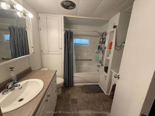 +"PublicRemarks": "Pride of ownership shows in this clean 3-bedroom mobile home in a year-round park. This open-concept home measures approximately 821 sq. ft., including a 7 x 15 addition off a 7 x 12 walk-up deck. Features include a spacious eat-in kitchen with dishwasher, large living room, and a generous 3-piece bath with laundry facilities. Gas heat and central air. Appliances included: fridge, stove, dishwasher, washer, and dryer, plus all window coverings. Enjoy added value with a separate 5 x 8 steel garden shed, and a 10 x 10 wood shed with storage add-ons on each side.The property backs onto a farmers field for added privacy and offers beautiful views of a hobby horse farm. Monthly land lease including community water & septic and water testing fee as well as snow removal from streets for new owner will be $545/mo."