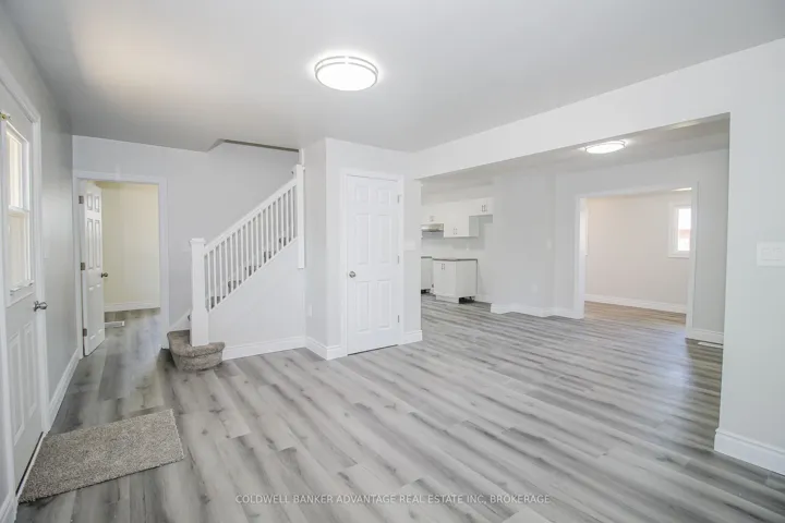 +"PublicRemarks": "Incredible property in the heart of Welland. All newly renovated 2025. This stunning property has been completely updated inside and out, featuring a brand new modern stucco exterior, new asphalt shingle roof, new windows, doors, and contemporary exterior lighting. The massive covered front porch spans the entire width of the home - perfect for relaxing outdoors. Step inside to an open-concept main floor, entirely reimagined with new plumbing, updated wiring, luxury vinyl plank flooring, fresh paint, new trim, and high-efficiency LED lighting throughout. The stylish new kitchen flows through a central dining area to oversized living room flooded with natural light. A bonus rear room on the main floor makes an ideal office or family room space. Two main floor bedrooms provide flexible living options. Upstairs offers two generous bedrooms and a sleek 4-piece bathroom. The basement is partially finished with an additional bedroom and a spacious recreation room ready for your personal touch. Set on a 0.3-acre lot, mostly fenced for privacy, this home is located near excellent schools, shopping plazas, and restaurants. Everything has been done, all you have to do is pack the boxes and move right in. Quick closing available to move in before the school year starts!"