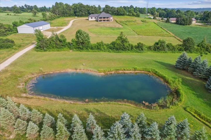 +"PublicRemarks": "This custom-built country bungalow, where craftsmanship meets comfort is an exceptional family home nestled in the rolling hills of Erin. Set on just under 9 acres of gently sloping lawns, a spring-fed pond, and endless outdoor beauty. From the moment you step inside, you'll feel the care and quality that went into this cabinetmakers personal residence. Striking details, soaring ceilings, and an open-concept layout set the stage, while over 200+ custom-built storage drawers keep family life beautifully organized. The heart of the home is a chefs dream kitchen, featuring solid wood cabinetry, high-end appliances, a massive quartz island with breakfast bar, and endless cupboard space. Gather in the great room around the fireplace, or share meals in the dining room as you soak in panoramic views of the countryside through the windows. Step outside to the elevated, covered balcony and catch unforgettable sunsets, your new favourite place to unwind. The main-floor primary suite is your own private retreat, with a coffered ceiling, spa-inspired ensuite, and a walk-in closet with built-ins that maximize both function and style. Two additional bedrooms offer the same high-quality finishes and thoughtful design. Head downstairs to discover the ultimate entertainment zone, a fully finished walk-out lower level with a large wet bar, cozy fireplace, theatre room, home office, and even a sauna. And then there's the workshop, an incredible 5,000 sq. ft. heated building with three 16x16 insulated doors, ideal for car enthusiasts, hobbyists, or entrepreneurs. Add in a 3-car garage, geo-thermal heating and cooling, in-floor heating throughout the basement and shop, fire pit & your family has found a forever home. This property doesn't just offer a place to live, it offers a lifestyle. From peaceful birdwatching by the pond to hosting unforgettable gatherings, this is country living reimagined for the modern family. This is where your family story continues."