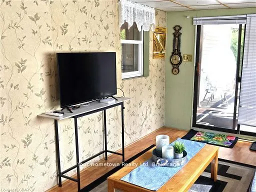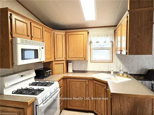 +"PublicRemarks": "Discover comfortable, affordable living in this spacious bungalow-style mobile home in Country Village Mobile Home Park, backing onto an open field with peaceful views and no rear neighbours. Enjoy a private, maturely landscaped yard, new exterior lighting, patio stone pads for outdoor living, and a welcoming enclosed front porch. Larger than it appears, the home features an inviting foyer, open-concept kitchen and living area, and a layout ideal for retirees or young families.The home offers 2 bedrooms plus addition space, 2 bathrooms including a 2-pc ensuite, walk-in closets, and blackout curtains in bedrooms. The fully renovated kitchen includes new countertops, Blanco sink, soft-close cabinetry, in-cabinet garbage/recycling, stainless steel appliances, and gas stove. Added heat in the front room ensures year-round comfort. Main bath features new backsplash and toilet, and the laundry room has updated sink and cabinetry with soft-close drawers.Mechanical includes two furnaces (one dedicated to the heated single-car garage), owned hot water heater, under-sink hot water heater in kitchen, water softener, attic and plumbing venting, and bathroom exhaust fan. Low monthly utilities average approx. $68 gas and $75 hydro.Exterior improvements include heated attached garage with bonus workshop/storage area, large rear storage structure, privacy fencing, landscaped cedars and spruce, new front door, ramp access, replaced windows and a double-wide concrete driveway with ample parking.Move-in ready with room to personalize, just minutes to Hanover and a short drive to Walkerton, offering affordability, comfort, and peaceful country-style living.Lease fees: $408/month (water included) + $25 water testing + $40 taxes = $473/month total payable to park."