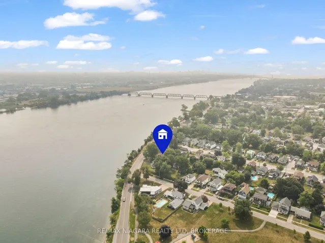 +"PublicRemarks": "Waterfront 4-bedroom, 1-office, 3-bath home overlooking the Niagara River, where nearly every principal room captures sweeping, ever-changing views. The main floor features a bright foyer & a skylight above the staircase. The spacious living & dining areas showcase panoramic river views through sliding patio doors opening onto decks overlooking the water. The warm & inviting family room features a fireplace framed by custom built-ins on both sides with shelving, & also offers direct access to the deck. Plush new carpeting enhances the family room, office, & stairway. The well-appointed kitchen is designed with quality cabinetry, numerous custom built-ins, a pantry, garburator, and a dishwasher. It opens to both the main deck and a charming side patio - perfect for morning coffee with river breezes. A large main-floor office adds versatility & convenience, with direct access from the garage into the office, allowing you to step from the garage into the home through the office or exit the office directly into the garage. A convenient laundry area & a powder room with its own heat lamp for added comfort complete the main level. Upstairs are four generous bedrooms & two full bathrooms, each featuring built-in shelving & heat lamps in every bathroom to warm you up & add comfort. The primary bedroom includes an ensuite, while the two front bedrooms enjoy private decks with sliding patio doors overlooking the water. Additional updates include new blinds in several rooms. There is central vacuum throughout. Outside, the property offers an attached 2-car garage with hydro & direct house access, a 2-car carport, & a large barn with a metal roof, electricity, & two full floors ideal for storage or hobbies. The backyard is private & serene. The home benefits from municipal water and sewer services. Right outside the property, the scenic Friendship Trail provides easy access to peaceful walks, bike rides, & the natural beauty of the waterfront setting."