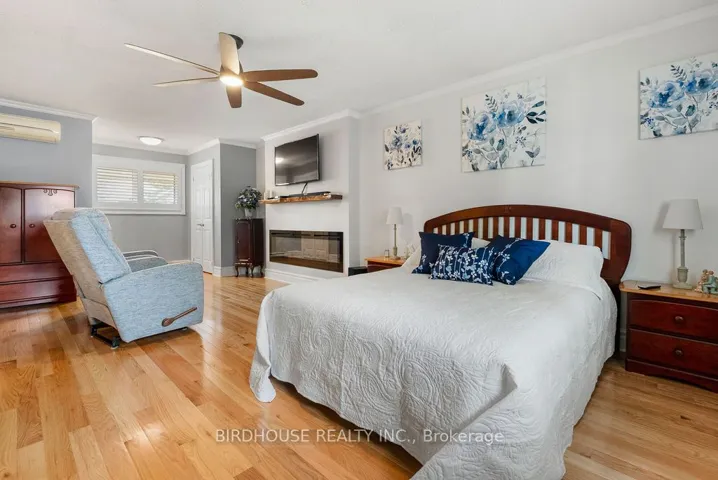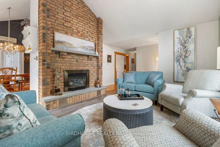 +"PublicRemarks": "Meticulously maintained and updated, this brick & vinyl raised bungalow is REALLY in move-in condition. Many perennial gardens, stamped-concrete walkways, and a maintenance-free deck with a remote-controlled awning, provide great outdoor living. A split-level entry provides easy access to the main floor or lower level, with custom oak stairs, ceiling high brick gas fireplace is a great centrepiece in the living room, which has direct access to a formal dining room, both with cathedral ceilings. Renovated custom kitchen cabinets with stainless steel appliances & island provide plentiful storage in the kitchen. The primary bedroom has 2 closets, plenty of room for a king bed, and a relaxation area in front of the modern electric fireplace. The lower level contains a third bedroom, office (or bedroom #4), and 2 living areas, one with another brick gas fireplace. Step up from the large laundry room into an insulated & heated double garage, perfect for car & carpentry enthusiasts."