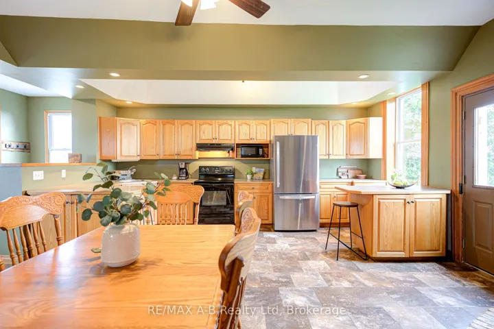 +"PublicRemarks": "Welcome to this charming two-story country home nestled on just under 3/4 acre. Surrounded by beautiful mature trees and open farmland, this rural retreat offers peace, privacy, and picturesque views from every angle. The inviting front porch faces north and east, providing the perfect spot to enjoy your morning coffee while taking in the serene landscape. Inside, the home features four bedrooms and two full bathrooms, with a thoughtfully designed main floor that includes a laundry room and an open-concept living, kitchen, and dining area ideal for family gatherings and entertaining. A standout feature of the property is the generously sized 24'x32' shop with trusscore walls, complete with poured concrete floor and a cozy wood stove, making it perfect for year-round projects, hobbies, or extra storage. Whether you're looking for a quiet escape or a place to grow, this property combines country charm with practical living in a truly special setting."