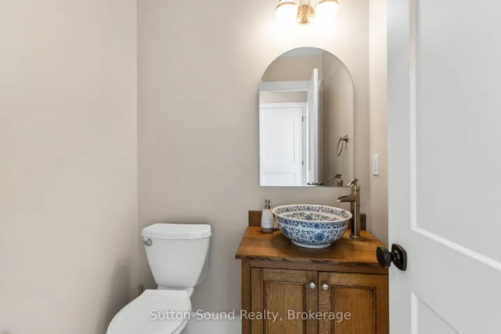 +"PublicRemarks": "This exceptional 149-acre farm is privately set at the end of a quiet dead end road, bordered by the dramatic backdrop of the Niagara Escarpment and offering sweeping views of the countryside. With approximately 143 workable acres, the land is open, fertile, and has been systematically tiled as needed, with fence lines removed to enhance usability and flow.The original 1870 farmhouse has been completely renovated into a warm, modern home. It features forced-air propane heating, central air, and hot water on demand. The kitchen is designed for gathering, with a large island that seats six and patio doors leading to the large side deck that flood the space with natural light and frame the beautiful landscape. Character details like deep window sills and a natural stone propane fireplace create an inviting main floor, which also includes a stylish two-piece powder room. Upstairs are three bright bedrooms, a four-piece bath with soaker tub and glass shower, and a spacious laundry room with a utility sink. The large primary bedroom offers stunning views overlooking the land. The attached garage is a functional and stylish extension of the home, with a glass overhead door, large windows, and a finished concrete floor. The basement is dry, insulated with spray foam, and features a concrete floor, updated mechanical systems, and ample storage.Outdoor living is enhanced by covered verandahs, patios, a propane fire table, and a peaceful, stone-lined year-round creek. Outbuildings include a towering bank barn suitable for livestock or horses, a 38x100 ft Quonset hut, and a 32x40 ft detached garage. Located near the Bruce Trail, scenic lookouts, and snowmobile/ATV routes, and just a short drive to both Wiarton and Owen Sound, this is a rare opportunity to enjoy rural living at its finest."