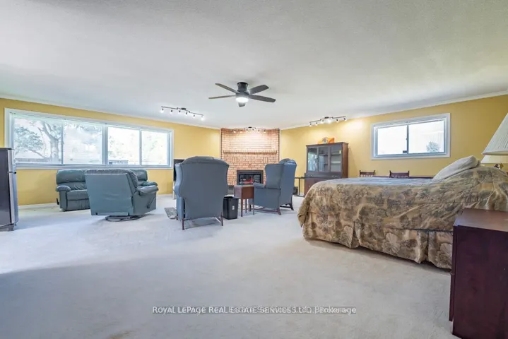 +"PublicRemarks": "Now on Standard Broadband fibre optics! Note 6 separate walkouts. Beautiful property to be your forever family home, ideal for multi generational living. Impressive (8 bedroom total) 4,500+ square feet (6 bedrooms on main level) bungalow with 3,000+ square foot lower level with walkout at grade level entry which includes a 2 bedroom 1,983 square foot inlaw suite (with lots more room to expand) all on a huge 25 acre parcel of land full of personality comprising a balance of workable land, mixed woods with amazing trilliums, all sure to please the most discerning buyer! Bring your wish list here and check off your boxes! If privacy is a factor, this fine family home is set well back off the road, and is nicely elevated affording beautiful views off all windows and ideal for the nature lover. Additionally for the car collector or multi vehicle family, a total garage space accommodating 7 vehicles or specialty toys, atv's, snowmobiles, etc., of which the tandem 4 car garage with double o/h door is 45'x23'. The updated pole barn with water and hydro has been improved with 3 System Equine stalls for your equine, goats, chickens, miniature horses, alpacas, llamas, donkey, and more! Fantastic location for Pearson Airport commuters per Google only 30 minutes."
