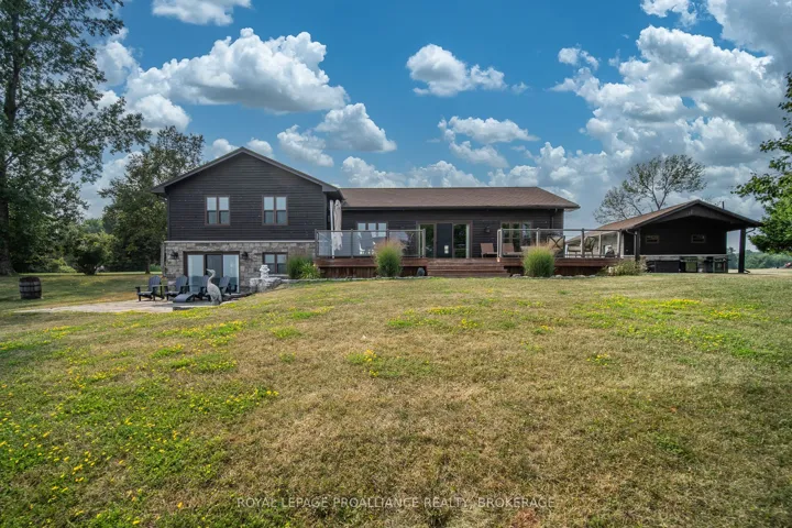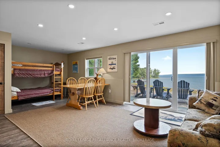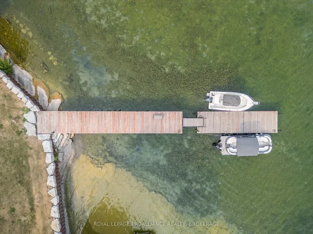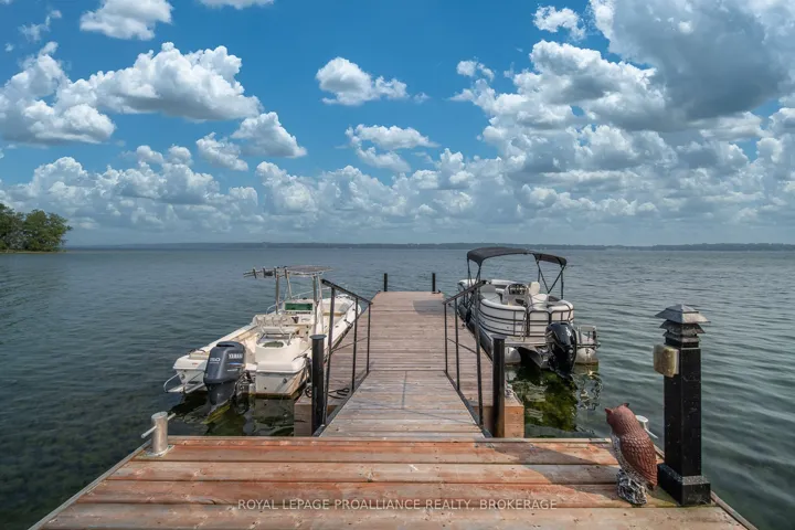 +"PublicRemarks": "Rare opportunity to own 2 separate but adjoined waterfront properties, offering a combined 3.6 acres and 312 feet of clean, sheltered shoreline on the South/Eastern end of Wolfe Island in the heart of the Thousand Islands. Currently a perfect single family compound, two deeds allow the option of a guest house if desired. 199 Leone's Cove Lane is a fabulous turnkey, recently constructed, split level home. The main level's great layout offers open concept kitchen and dining, electric fireplace, and patio doors opening onto a spectacular river view deck. A walk through pantry and custom bar lead to a 3-piece bathroom. The upper level has three bedrooms and full bath, while the lower level has a rec room with walk out to patio doors, laundry/mechanical room and an additional bedroom. Outside, over 2 acres of landscaped and manicured grounds provide ample space to enjoy more than 220 feet of natural flat rock shore. The property boasts new steel and stone break walls and ample floating and fixed dockage, perfect for swimming, fishing, kayaking, and boating. A fantastic garage (22x19) with pine board and batten interior with pot lighting provides another cozy indoor space. There is a lovely outdoor pavilion built for parties and entertaining that overlooks ships navigating the St. Lawrence River to and from Lake Ontario.213 Leone's Cove Lane, the waterfront neighbouring property, has a 38x35 foot barn adorned from floor to ceiling with knotty pine, patio doors leading out to a stone landing, and quality lighting. All buildings for both properties have beautifully coordinated stone and siding. An additional 1.2 acres leads to 91 feet of clean shoreline, with your own boat launch and floating dock. Truly a once-in-a-lifetime opportunity. It's time to pack your bags, grab your friends and family and start making wonderful memories. Be one of the lucky few to know the joys of island life."