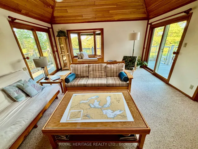 +"PublicRemarks": "Welcome to the top of Roberts Island!10 reasons this island paradise will capture your heart. Unique design with breathtaking panoramic views.Three spacious bedrooms, all with ensuite bathrooms and walk outs, complete in-house water filtration system, 360 Wrap-around, composite decking for seamless outdoor access, in-floor heating system, two screened-in porches for bug-free enjoyment, six skylights flooding the rooms with natural light,12 acres of "National Park" - like island bliss and abundant wildlife, thousands of feet of lake shore on two sides of Roberts Island.A fully functional woodworking shop for your hobbies.Create unforgettable family memories at this one-of-a-kind island retreat, complete with an electric golf cart and an on-shore dry boat house and bunkie. The property sale also includes the opportunity to purchase the existing membership at The Honey Harbour Boat Club Marina, to ensure long term access by water."