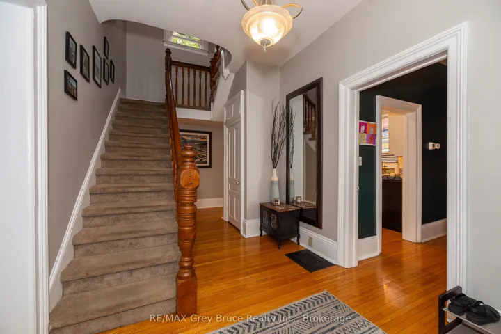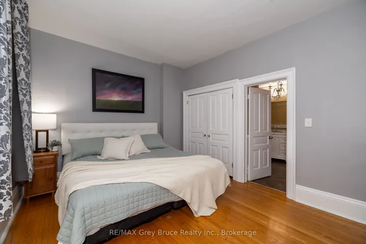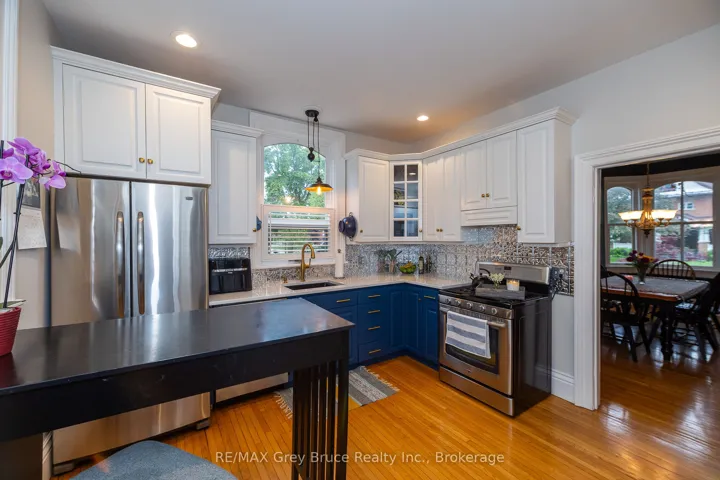 +"PublicRemarks": "Historic elegance meets modern comfort! This beautiful 4 bedroom, 3 bath home offers timeless character and modern updates on one of Owen Sounds most prestigious streets. Surrounded by landmarks like the former U.S. Consulate, Billy Bishop House, and James Harrison House, it's just a short walk to the Mill Dam, Farmers Market, Library, and the River District. Inside, you'll find soaring ceilings, hardwood floors, oversized windows, and a sun-filled living room overlooking the charming verandah. The custom kitchen with quartz countertops and ample cabinetry flows into a formal dining room perfect for entertaining. Upstairs features three bedrooms and a large family bath with laundry, while the third-floor primary suite boasts skylights, a sitting area, and a spa-style ensuite. Heated floors in both full baths and the family room add year-round comfort.The fenced backyard is a private retreat with mature landscaping, waterfalls, a pond, stone patio, and expansive deck. With natural gas heating, central air, a basement walkout, and a rare 52' x 186.6' lot, this property offers history, charm, and an unbeatable location."