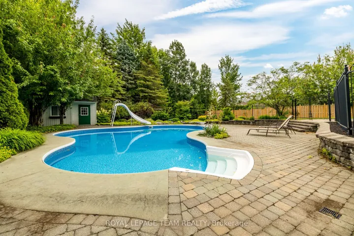 +"PublicRemarks": "Nestled on one of Stittsville's most coveted streets, this distinguished estate home showcases timeless elegance and unmatched curb appeal. Featuring meticulously landscaped gardens, striking stone, and a rare triple-car garage, this 5-bedroom, 3-bathroom residence elevates family living. Set on a premium lot, this home boasts what is undeniably one of the most spectacular backyards in the entire neighbourhood. Thoughtfully designed for year-round enjoyment and luxurious outdoor living, this private oasis features an oversized inground saltwater pool surrounded by lush gardens and mature trees, creating a resort-like atmosphere. An expansive deck and inviting 3-season sunroom offer the perfect space for relaxing or entertaining. For added fun, enjoy your very own beach volleyball court in the summer, transformed into a magical ice rink in the winter; making this backyard truly one-of-a-kind! Inside, the home is equally impressive. The beautifully updated chefs kitchen is a dream, complete with a large island, granite countertops, stainless steel appliances, and abundant cabinetry. A butlers pantry connects to the elegant formal dining room, perfect for hosting. The main floor also features a dedicated home office, ideal for remote work. Upstairs, the luxurious primary suite offers a peaceful retreat with a cozy fireplace, a walk-in closet, and a newly renovated spa-inspired 5-piece ensuite. The second level also includes a convenient laundry room, fully renovated 4-piece bathroom and 3 additional bedrooms. The finished basement adds even more versatility, featuring a spacious bedroom, a massive recreation area, and a stylish bar, perfect for movie nights, game days, and family gatherings. Walk to Main Streets cafes, shops, restaurants, schools, library & more. A rare retreat offering elegance, space, and lifestyle in the heart of the community!"