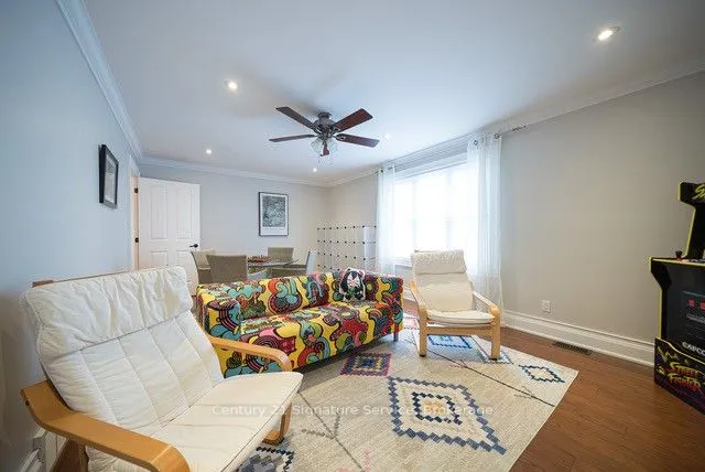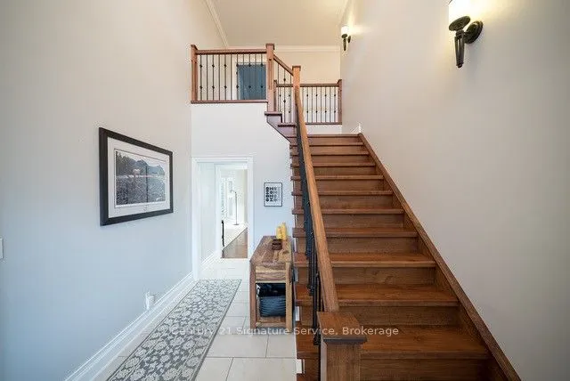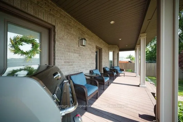 +"PublicRemarks": "Custom-Built Beauty with Modern Comforts This 4-bedroom, 3-bath, all-brick and stucco home blends elegance with everyday convenience. The open-concept main floor features a chefs kitchen with cherry cabinets, granite counters, stainless steel appliances, and a walk-in pantry. Enjoy the bright living room with hardwood floors, gas fireplace, and walkout to a covered porch.The main-floor primary suite includes a spa-like 5-piece ensuite, huge walk-in closet, and private deck access. Upstairs offers a spacious great room, 2 bedrooms, and a full bath. Extra touches include crown molding, 9-ft ceilings, auto-lit closets, and main-floor laundry with garage access.Outside, relax in a fully fenced yard with gazebo, underground sprinklers, and an insulated 14x18 shed with hydro and storage loft. A backup generator adds peace of mind. Home is Move-in ready, thoughtfully designed, and perfect for family living and for those that want to escape the hustle and bustle of the city but keep their modern comforts."
