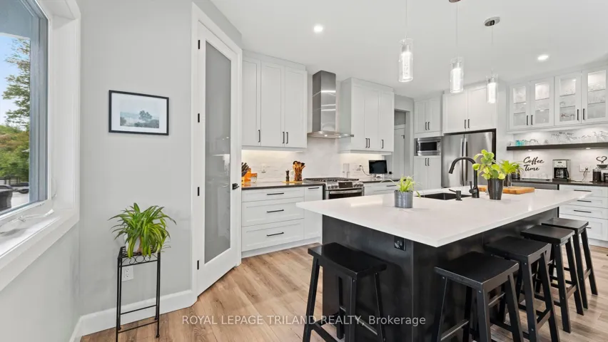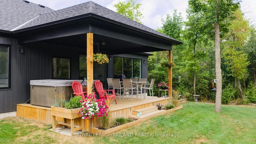 +"PublicRemarks": "30'x33' WORKSHOP - Open-Concept 3 Bedroom Bungalow with attached oversized 2 car garage (25 x 25) plus a dream workshop. Built in 2021 on a private, beautifully landscaped 1 acre lot backing onto the woods. Kitchen with large quartz island, stainless appliances (including gas stove) and white shaker cabinets to the ceiling. The coffee bar, pantry, LVP flooring and 9' ceilings are just a few of the amazing features this home has to offer. The dining & living room boasts a ceramic gas fireplace and a wall of windows overlooking the stunning back yard. Sliders to a covered 14x20' wooden deck that is large enough to host family gatherings. Primary bedroom includes an en-suite with double sinks and a walk-in closet. Nice sized 2nd bedroom with cheater en-suite. The Den off the foyer would be perfect as an office or guest bedroom. Main floor laundry/mudroom. Partly finished lower level with a bedroom, storage room, cold room and a large unfinished area that's ready for your personal touch. More notable features include Hot Water on Demand, Lifebreath HRV and a generator transfer switch. Hikvision Video Recorder & Security Cameras, plus monitored home and garage security system. Outdoor features include a 10x10' shed, vegetable garden, greenhouse and designated dog wash station in the garage. Heated workshop with 12' ceiling includes 2 overhead doors, a car lift and a 2-pc bathroom. Located near the Pinery Provincial Park between Port Franks and Grand Bend. Approx 45 minutes from London or Sarnia. Close to all of the fantastic amenities that Grand Bend has to offer."