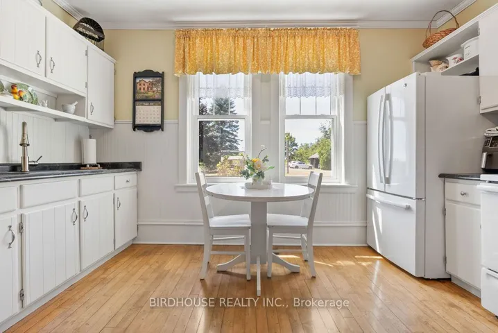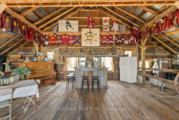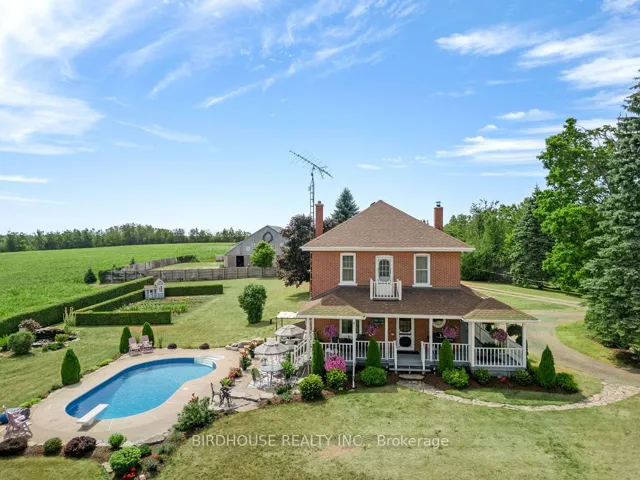 +"PublicRemarks": "This stunning 99 acre farm property has been beautifully restored and updated. The country kitchen has a modern cooking range and a working woodstove - extra cooking surface & great ambiance & warmth for cold winter days. All wood floors (on 3 levels) have been lovingly refinished to original sheen. Second floor bathroom has a large corner jacuzzi tub and separate shower stall. The restored 3rd floor is a wonderful family room, playroom or guest suite with a sectional sofa, bed, dresser, sink and claw foot tub-set right under the skylight. Main floor laundry has a sink and toilet. The exterior is meticulously maintained! Plenty of perennial flower beds, a vegetable garden, fish pond, playhouse and an in-ground pool! Outbuildings include a drive shed, pole barn & a bank barn - lower level was used for cattle and the upper level has been the location of many Birthday and Anniversary Parties-and even a Wedding! Property has approximately 20 acres of mixed bush, a shallow pond (great for skating) and over 75 acres of workable land currently rented by a neighbouring farmer. A unique property-only owned by 3 families in over 100 years!"