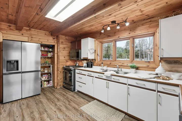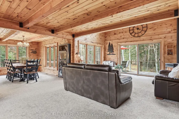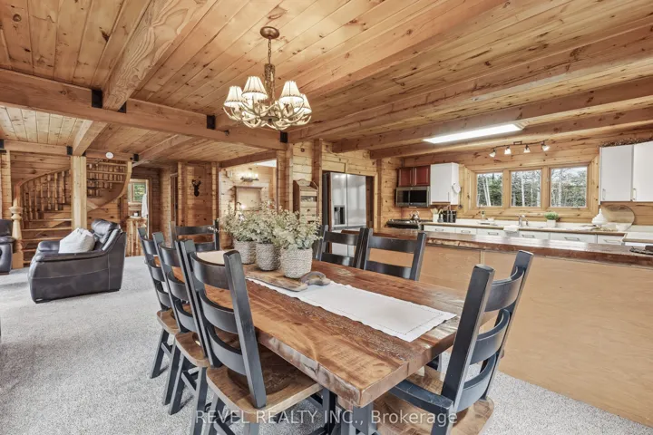 +"PublicRemarks": "Welcome to 3515 County Rd 121, this stunning 4+1 bedroom 3 bathroom log home with metal roof, offers the perfect balance of rustic charm and modern comfort. Walk in and be mesmerized by the grand foyer & living area, cathedral wood ceilings, cozy fireplace and abundant natural light from picturesque windows creating a warm and inviting atmosphere.The kitchen/dining combo is a cooking paradise, featuring newer appliances, propane stove, OTR microwave, pantry and ideal for both daily living and entertaining. Gorgeous spiral natural wood staircase leading you to the upper level of the home with additional bedrooms, full bathroom and sitting area loft. Primary Suite with walk out Juliet Deck. Lower level with full recreational room, laundry area, sauna, built in hot tub, bathroom and walk out to yard. Perfect in law suite potential with separate entrance.Step outside to the expansive wraparound deck with breathtaking views of the pond and surrounding 1.89 acres of forest. Whether you're enjoying a quiet morning coffee watching the wildlife or hosting family and friends in the evening watching the fire flies having a bonfire, this outdoor space is sure to impress.This property has several uses, perfect as a year-round residence, seasonal retreat, multi family or income opportunity, this property offers a lifestyle of peace, beauty, and versatility. Bonus three car detached garage with hydro. Do not miss this opportunity to make this your next home."