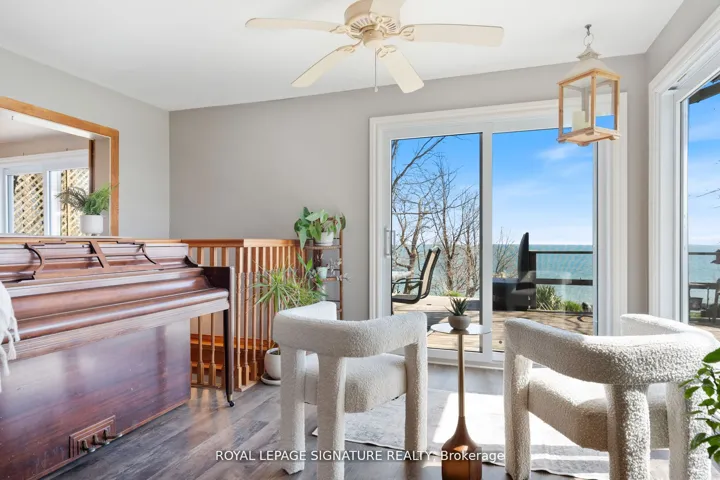 +"PublicRemarks": "Nestled at the end of a quiet dead-end street in the heart of Port Dovers picturesque lakeside community, this 1.5 storey waterfront retreat offers 2,530 sq ft of thoughtfully designed living space with breathtaking panoramic views of Lake Erie and the Port Dover Harbour Marina just a short 5-minute stroll from the beach, vibrant downtown shops, restaurants, and local attractions. Perfectly blending relaxation with convenience, this versatile property boasts in-law suite capability, an attached two-car garage, and ample outdoor parking. The main level invites you in with an open-concept kitchen, living room, and sitting area awash in warm southern exposure, where oversized windows frame stunning water vistas and patio doors open to an expansive deck ideal for morning coffee or evening sunsets. The kitchen showcases a large granite- topped centre island, abundant cabinetry, generous counter space, and hardwood floors, while the living room features a cozy gas fireplace and easy-care vinyl flooring. The spacious primary bedroom offers private deck access, extending the full width of the home and wrapping partially around the west side to maximize sun exposure, while a second bedroom and a large4-piece bath complete the main floor. Above the garage, a bright and airy 543 sq ft bonus space presents its own 5pc bathroom, large walk-in closet, triple patio doors to a private balcony with unobstructed lake views perfect for an in-law suite, home office, or guest retreat. The lower level provides a finished 285 sq ft room currently used as a fourth bedroom, along with a laundry area and abundant storage. Outside, enjoy serene landscaped perennial gardens, a tranquil fish pond, and a durable metal roof, all enhanced by a 100-amp hydro panel and surrounded by the calming presence of nature and water offering a rare opportunity to own a peaceful waterfront gem in the coveted community of Port Dover."