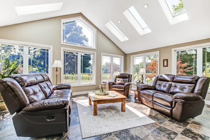+"PublicRemarks": "Serene, quiet, and elegant. Hard to describe this hobby farm with its nearly 9 acres, private pond, horse pastures, hip roof barn with stalls, hay storage, machine shop, and a renovated home sitting on small hill surrounded by tall trees. Within 10 minutes of Tillsonburg, the home with a curved driveway with a double car and heated garage, in ground swimming pool, pool house, irrigation, lighting, and a stand by generator, this home shows well during the day and night! Inside we have an oversized laundry/mudroom leading to a kitchen in a new additions with lots of windows, skylights, and surrounding views of the pastures. With three bedrooms on the main floor and two bathroom, and a large rec room and living room and another bathroom and bedroom in the walk out basement, this home has everything for a family or someone looking to take their horses or beef home!"
