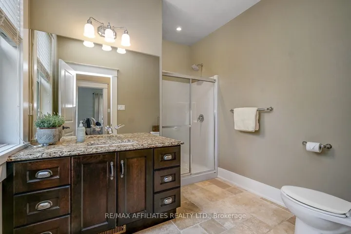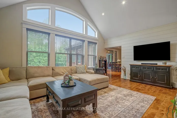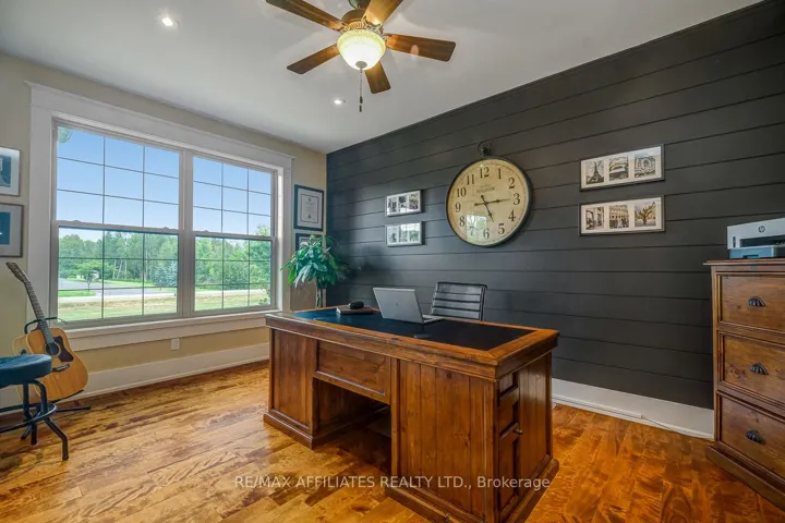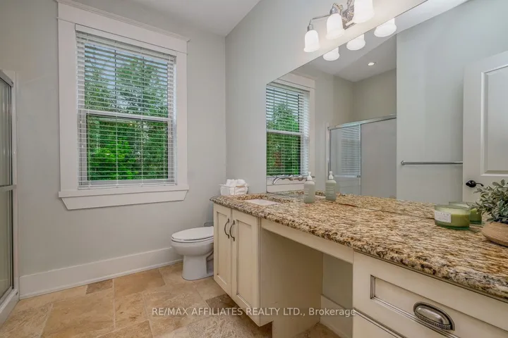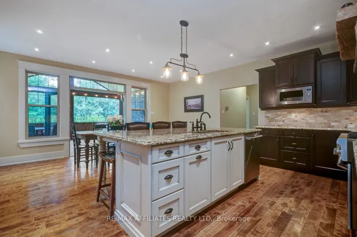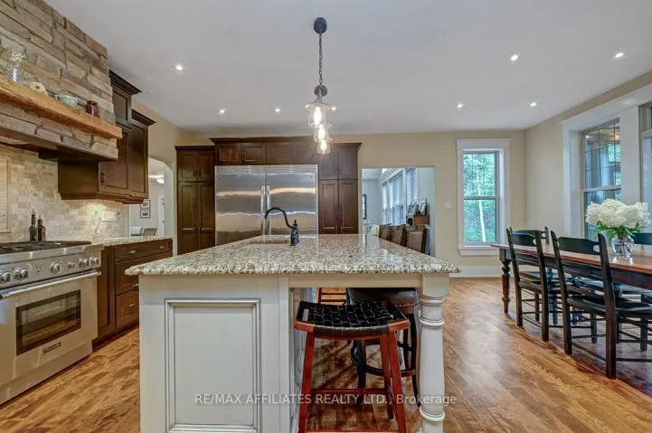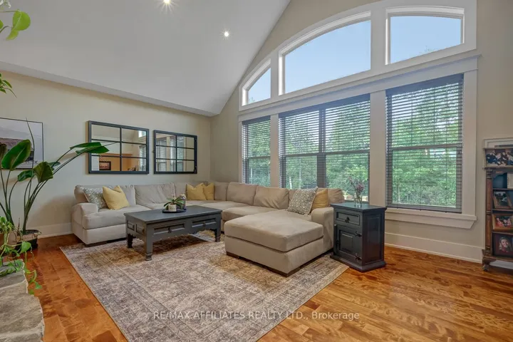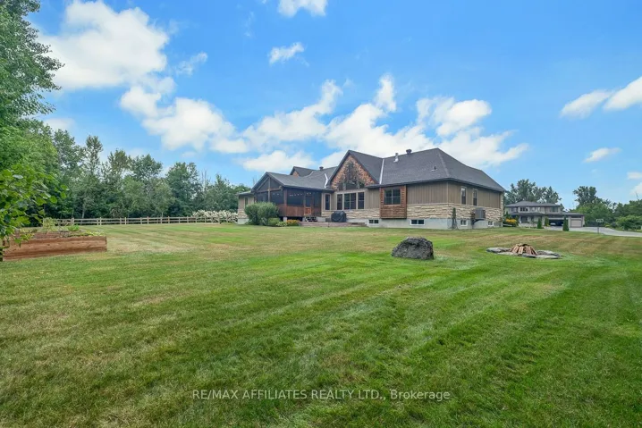 +"PublicRemarks": "Rarely available, an executive 3 bed & 3 bath bungalow in Stittsville's most unique enclave - Jordan Estates. Renowned for its large estate lots, natural gas & proximity to Main St, it is a stunning neighbourhood of custom-built homes. Situated on a gorgeous tree lined 1.974 acres, this property was custom built and maintained with attention to every detail, it provides a modern split bedroom design, while offering one level living with 3100sq ft+. The well-appointed mains rooms, and open plan Foyer, Dng & Lvg rooms are anchored by the gorgeous floor to ceiling stone gas fireplace. The Lvg room is filled with natural light, from floor to 16+ ft vaulted ceilings. Formal Dng room with accent wall. Convenient Office with privacy French doors and northerly views. The heart of the home, the Kitchen, was designed for large gatherings and is sure to please any chef/baker. Commercial grade side by side s/s Fridge/Freezer, 4 burner gas stove, massive centre island with sink, and cocktail side bar with wine fridge, makes feeding a crowd a delight. The seamless indoor to outdoor transition/flow, with expansive windows & doors, creates an extension of the Kitchen & Eating area into the 3-season screened in porch with private sunset views. Primary suite with calming neutral colours and decor, o/s windows, walk-in closet and a luxurious 5-piece ensuite w/ water closet. Located at the opposite end of the home are 2 additional generous sized bedrms, each with their own W/I closet and 3-piece ensuite. Heated 3 car/truck garage, with separate direct access to mud room and lower level, all set for tools & toys. Additional o/s parking for RV/Boat/Trailers in the private rear lane. Warm maple hardwood floors throughout the main rms, travertine tiles, deep baseboards, wide trim work, granite counters throughout, shiplap, accent walls, neutral paint colours & o/s windows everywhere, are just a few of the details that give this property the aura of subtle sophistication it deserves."