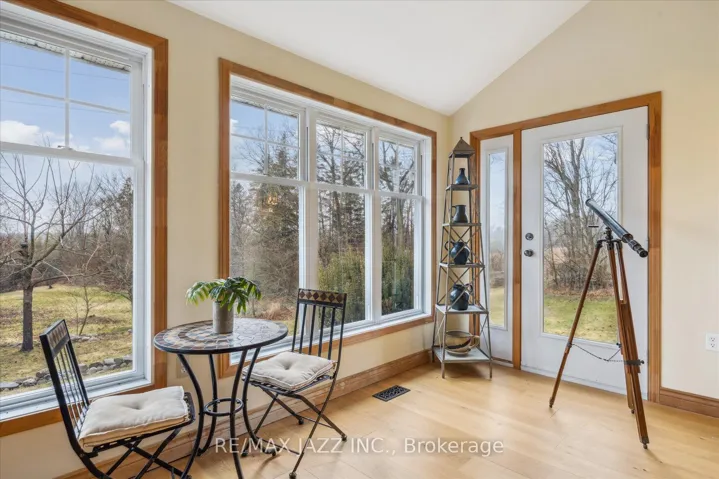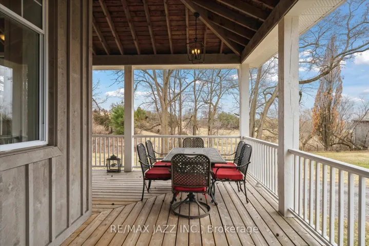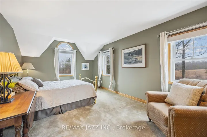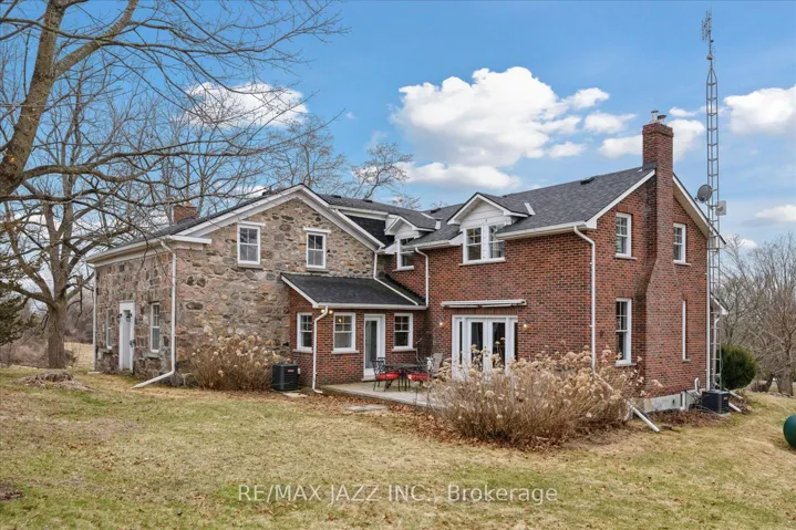 +"PublicRemarks": "This breathtaking 174.6-acre estate is an extraordinary find. Towering trees form a natural canopy over the private road, leading to rolling hills, meandering trails, two serene streams, and a picturesque ravine-an outdoor paradise of beauty and tranquility. At its heart stands a masterfully preserved Loyalist stone cottage, a testament to history for over 150 years. Lovingly restored and expanded with two substantial additions, this home now offers almost 4200 sq. ft. of living space, blending heritage charm with modern comfort. With 6 bedrooms and 2 full baths, there's ample space for family and guests. Two of the bedrooms serve as an office and craft room, offering versatility for remote work, hobbies, or creative pursuits. Upstairs, one bedroom is staged as a flexible retreat-ideal as a second family room, games room, library, or billiards room. A sprawling wrap-around covered porch invites relaxation while embracing the peaceful surroundings. Four wood-burning fireplaces add warmth, while the grand family room, framed by substantial solid wood beams, is bathed in natural light from east, west, and north-facing windows. The kitchen is ready to be reimagined, allowing you to design a space that blends seamlessly with the homes historic charm. The modern wing offers room to create a luxurious primary suite, providing a private retreat that merges history with modern comforts. A magnificent century-old barn stands as a striking landmark. With soaring ceilings and a vast lower level, it holds relics of the past-perhaps even valuable antiques-waiting to be rediscovered. Whether restored, repurposed, or left untouched, the barn remains a defining piece of the property's story. Despite its privacy, the estate is just 10 minutes from the 401 and under 20 minutes from the 407. approximately 100 acres are leased to a neighboring farmer. This one-of-a-kind estate is ready for its next chapter - an extraordinary opportunity to create a lasting legacy."
