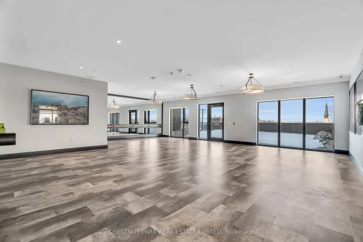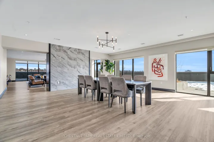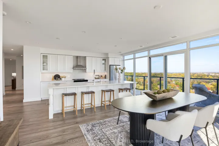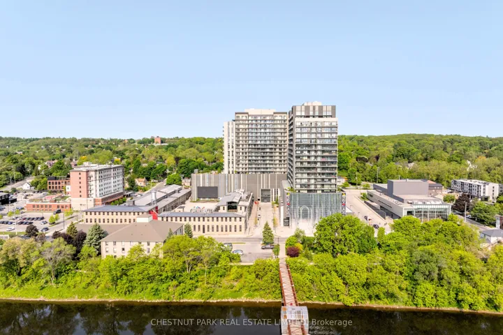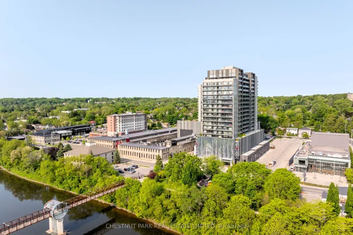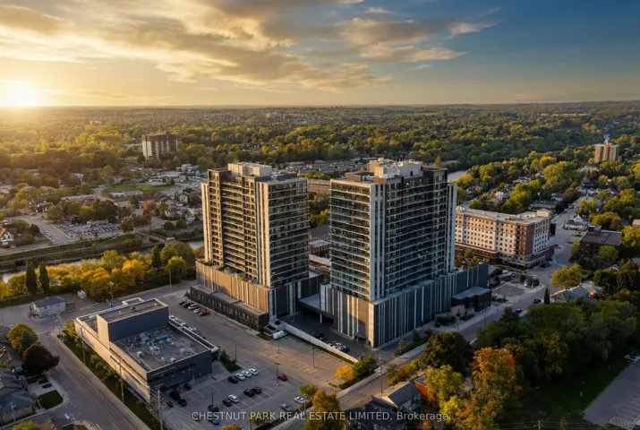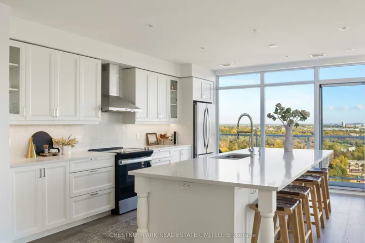 +"PublicRemarks": "Luxury Penthouse Living in the Heart of the Gaslight District! An extraordinary 2,300 sq. ft. residence created by seamlessly combining two expansive units. Spanning the entire side of the building, this one-of-a-kind three-bedroom, three-bathroom home offers breathtaking panoramic views of historic downtown Cambridge and the Grand River. Step into a grand foyer that opens into a sun-drenched, open-concept living space. Floor-to-ceiling windows bathe the home in natural light, while engineered hardwood floors add warmth and sophistication. The thoughtful layout includes pocket doors in every bedroom, maximizing both space and functionality. At the heart of the home is a chefs dream kitchen, fully upgraded with quartz countertops and backsplash, an oversized island, and premium finishes. Designed for both style and efficiency, this space is perfect for intimate dinners or lavish gatherings. The primary suite is a private retreat, complete with a spacious walk-in closet/dressing area with custom organizers and a large window. The spa-like ensuite boasts a walk-in glass shower and dual sinks, while sliding glass doors provide direct access to the penthouses expansive 100-ft. terrace. The second bedroom features floor-to-ceiling windows, a wall-to-wall closet, and its own private three-piece ensuite. A third generous bedroom currently configured as an office/den offers additional flexibility. This extraordinary residence also features a wraparound balcony accessible from every room, offering spectacular sunrise and sunset views over the city skyline and Grand River. Additional features include two underground parking spaces (one with an EV charging station), two private storage lockers, and access to state-of-the-art amenities: a rooftop terrace, private dining room, fitness center, yoga & Pilates studio, and an elegant lobby."