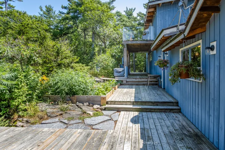 +"PublicRemarks": "CAMPBELL ISLAND A LEGACY PROPERTY 25 + acre island located in north Sans Souci, Campbell Island is divided into 5 legally severed ~5 acre lots plus right of way. Pt/Lot 2 is enhanced with a recently completed cottage compound; a 1-bdrm 2-bath main cottage, 2 self-contained guest cottages & utility structures. Masterfully planned and built, the fully winterized compound features state of the art appliances, high end fixtures/finishes throughout. The 2500 sq.ft. main cottage living, dining, kitchen,& family room, all have walk outs to surrounding decks. Also on the main floor, a 3-pc bath, a large pantry and a utility/mud room with exit to a back deck. Overlooking the living room, the second floor master bedroom suite/sitting room /office/has a 3-pc bath with walk in shower. French doors open onto a private rear balcony with outdoor shower. The balcony offers cover for a ground floor outdoor kitchen equipped with a prep bar & sink, a BBQ, smoker,& a wood burning pizza oven. Two 600 sq.ft. guest cottages each have 2nd floor sleeping lofts w clerestory windows main floor living room w kitchenettes (sink & fridge) and 3 pc. baths. Both open onto private waterside decks A network of granite stone paths and boardwalks connect the cottages to the accessory buildings; work shop, utility shed, mechanical shed, & dock house/harbour. The island has 3 superb natural harbours with docks in place in 3 locations. A gravel road leading from the north harbour links each of the lots for service access and lot enhancement. Hydro is accessible from Lot 2.All four lots have elevated building sites with spectacular sweeping views to the outer islands of North Sans Souci, the Umbrellas & the Westerns. The water surrounding Campbell is crystal clear. Swimming is superb and the area is renowned for spectacular sailing cruising and fishing. A remarkable and rare opportunity to create a superb multigenerational extended family island or an investment opportunity for the future"