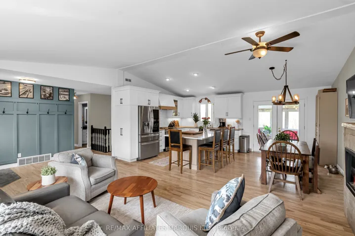 +"PublicRemarks": "Welcome to this beautifully updated home offering the perfect blend of rural tranquility and modern convenience. Nestled on over 5 private acres, this 3+1 bedroom, 2-bathroom home is thoughtfully designed with space, style, and functionality in mind.Step inside to an open-concept main floor featuring a spacious living and dining area that flows seamlessly into a stunning custom kitchen by Artisan Kitchens. Just off the dining room, enjoy the outdoors from your screened-in porch ideal for relaxing or entertaining.The main level features a large 3 piece bathroom, three generously sized bedrooms, including a primary suite with a dream walk-in closet. The fully finished lower level offers even more space, including a large open rec room with a cozy bio-fuel pellet stove, an additional bedroom (currently used as an office), and a second 3-piece bath.Outside, you'll find a large garage with a wood stove, a new shed, and extra storage under the screened-in porch. For nature lovers and hobby farmers, the property boasts 500 blue spruce and 500 silver maple trees, along with black walnut trees, apple trees, berry bushes, and grapevines. Theres even a rustic hunters camp with its own wood stove.Enjoy summer days on the expansive back deck complete with an above-ground pool and hot tub, all just a short drive to Ottawa, Montreal, and Cornwall.This property combines modern comfort with country charm, all within easy reach of city amenities. 24 hour irrevocable on all offers."