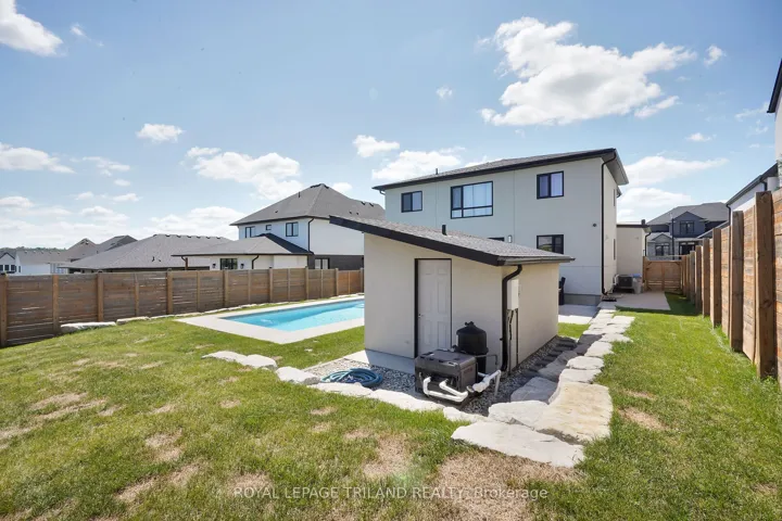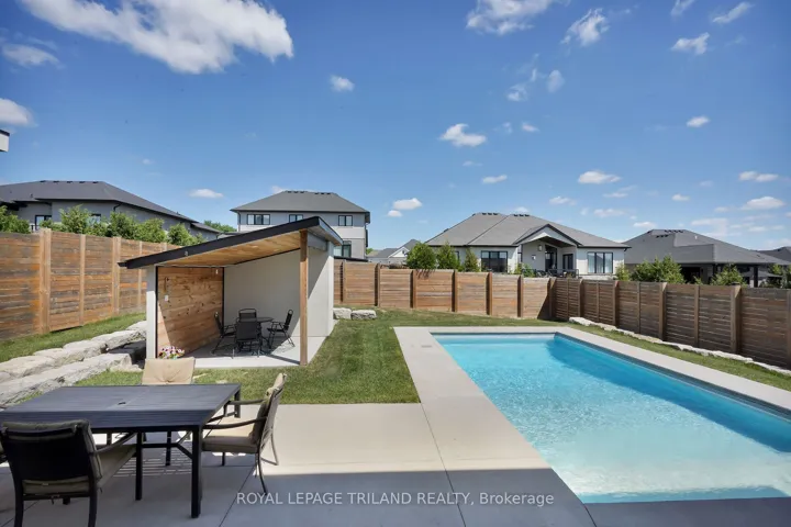 +"PublicRemarks": "Welcome to Your Dream Home in Edgewater Estates Nestled in the prestigious Edgewater Estates, this exquisite 2-storey home blends luxury with comfort, offering 4 spacious bedrooms and elegant living throughout. Step into a bright and inviting space adorned with Wood slat feature walls that create a modern yet warm atmosphere. The gourmet kitchen is a true chef's dream, featuring high-end appliances and a rare walnut tabletop, complemented by sleek porcelain countertops that elevate your cooking experience. Whether you're preparing a family meal or hosting friends, the hardwired ceiling speakers in the family room and kitchen will ensure a harmonious ambiance for every occasion. Step outside to your own private sanctuary an in-ground, heated saltwater pool surrounded by a fully fenced yard for maximum privacy. The pool house includes its own washroom and shower, providing both convenience and luxury for your gatherings. The 24-foot wide double car garage offers ample space for vehicles and storage, adding practicality to this stunning residence. Located in one of Komoka's most sought-after neighborhoods, this home is just minutes from local amenities, providing the perfect balance of serene living and convenience. After a long day, unwind in your luxurious soaker tub, complete with an on-demand hot water tank for the ultimate relaxation. This is a rare opportunity to own an exceptional home in Edgewater Estates. Contact us today to schedule your private tour and experience all the beauty this home has to offer!"