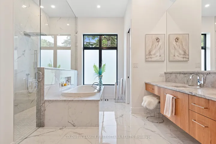 +"PublicRemarks": "Wake up and come home to herons at this one-of-a-kind waterfront home by award-winning Canterra designer Cosimo Zacconi. Set on a private riverfront, the home blends striking architecture with natural beauty and serene surroundings, offering a peaceful retreat just minutes from city conveniences. Stucco and masonry façades, oversized European windows, and a streamlined roofline welcome you through a 9-foot Sapele wood door into interiors of stone, porcelain, and white oak, accented by black details, geometric lighting, and sweeping river views that fill each room with natural light and a sense of calm. Extensive custom millwork by Marina Medina Design and Exotic Wood of Ottawa provides clever storage and built-in lighting. At its heart, the chef's kitchen features Thermador appliances, a six-burner gas range with induction plates, dual ovens, a 10-foot Tahiti quartzite island, and oak cabinetry. A 13-foot linear fireplace mirrors the kitchen's porcelain detailing under soaring ceilings, anchoring the open-concept living and dining space, perfect for family gatherings, entertaining friends, or relaxing with loved ones. Five bedrooms and 4.5 baths include two spa-like ensuites with oversized showers and marble finishes. The lower level offers two bedrooms, a recreation room with three-sided fireplace, wet bar, and walkout to the covered terrace. Above the three-car garage, a private loft suite with deck and full bath provides ideal guest or family quarters or potential for a home business. Outdoor living features glass-railed decks, covered lanai, and permanent dock along stabilized, naturalized shoreline. From morning coffee to sunset gatherings, enjoy boating, entertaining, or simply relaxing in nature. This home is more than a residence, it is a lifestyle, designed for comfort, modern living, and timeless elegance. Built with insulated concrete forms, it is exceptionally solid, quiet, and energy-efficient. Truly, a once-in-a-lifetime home you will cherish forever."