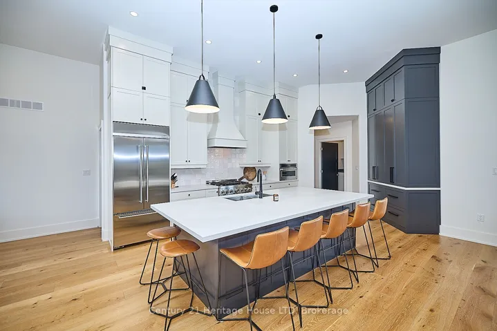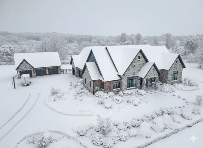 +"PublicRemarks": "Experience the perfect blend of country charm and in-town convenience with this exceptional brick bungalow on 1.7 acres of professionally landscaped grounds.A stone walkway, lush gardens, and a welcoming front porch create outstanding curb appeal. Inside, the open-concept layout is designed for modern living. The chefs kitchen boasts quartz countertops, a large island with seating, built-in appliances, and ample cabinetry. A bright dining area flows into the spacious great room featuring a cozy gas fireplace with a custom cast mantle and patio doors leading to a covered rear patio and resort like backyard.The primary suite offers a walk-in closet and spa-like 5-piece ensuite with in-floor heating, quartz vanity, soaker tub, and separate shower. Two additional bedrooms with walk-in closets share a stylish 4-piece bath. Hardwood flooring runs throughout, complemented by a powder room, main-floor laundry, mudroom with garage access, and an unfinished basement ready for your vision.Outdoors, enjoy a detached 3-car garage with roughed-in in-floor heating and loft space, a fenced yard with in-ground pool, and an entertainment area with outdoor fireplace and entertaining bar perfect for gatherings.Located within walking distance to Lake Erie and the Friendship Trail, and minutes from schools, beaches, arenas, community centre, highways, and the Peace Bridge, this property delivers lifestyle, comfort, and convenience."