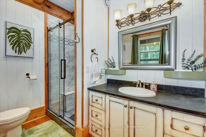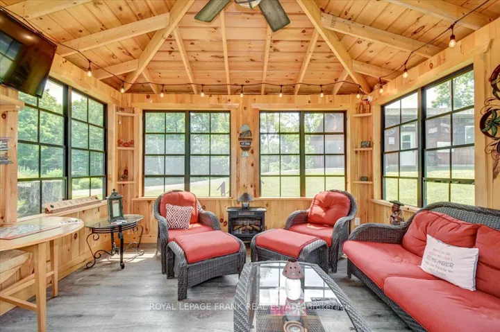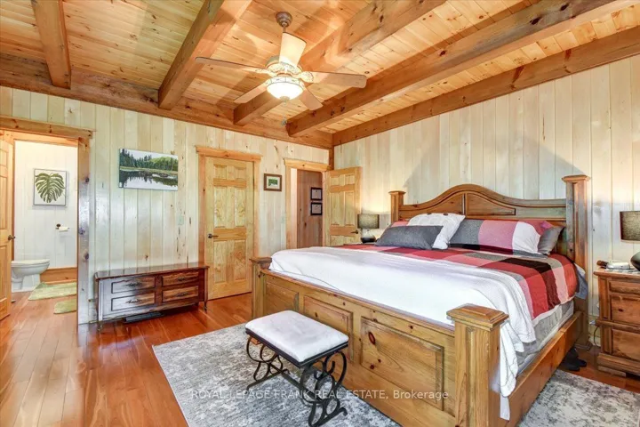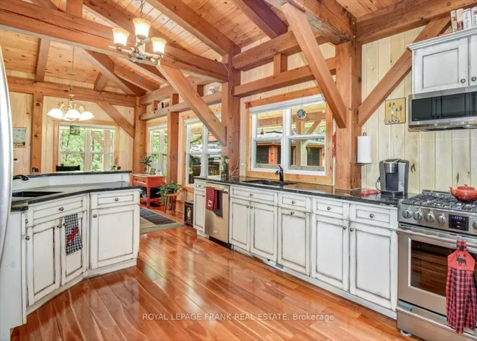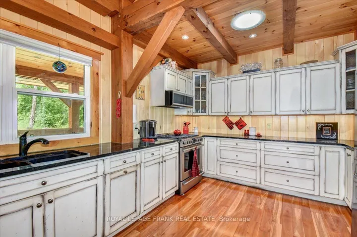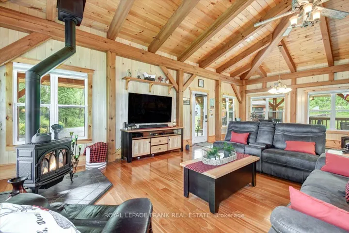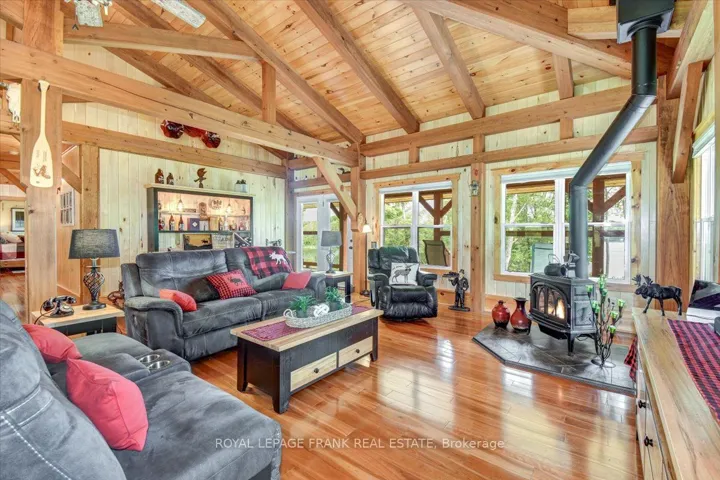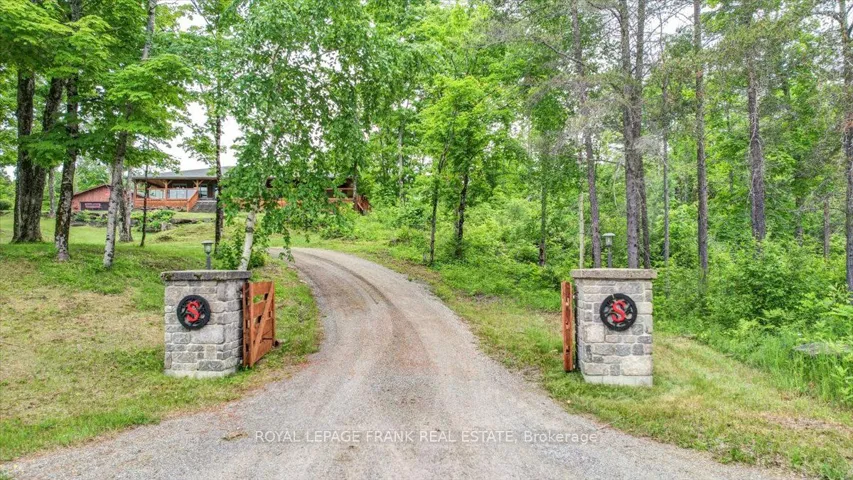+"PublicRemarks": "Steenburg Lake! The complete package and more! This Timber Frame home is sure to impress. Amost 1800 square feet of living, with a full wrap around porch, perched perfectly over looking beautiful Steenburg Lake, with clean waterfront, all sitting on 86 acres of land with trails throughout. The waterfront is across the paved cottage road with a large dock system and newer floating boat house, big enough for a 22ft pontoon boat. There is a 30x40 heated shop, with drop down screen door system and a large covered area for extra storage. Hangout in the screened gazebo or chill on the wrap around porch. Extra features include: auto generator, central air, high efficiency furnace, underground sprinklers, alarm system with cameras, stainless appliances, hardwood flooring, a small pond with fountain and so much more. Recent upgrades include furnace, central air, roof and eavestroughs. This is a legacy type property that will be hard to match. Come take a look and you won't want to leave!!"