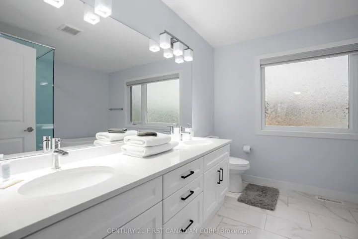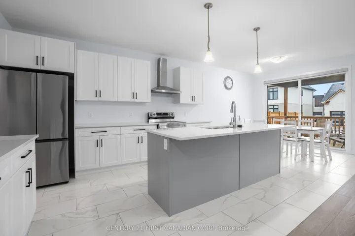 +"PublicRemarks": "Immaculate 2-year-old home, located on a premium corner lot in South London's prestigious Silverleaf Estates. Offering 2,700 sq ft of thoughtfully designed living space, it features 4 spacious bedrooms and 3.5 bathrooms the perfect blend of modern style and everyday comfort. In pristine condition, the main level boasts an open-concept gourmet kitchen with a walk-in pantry and a bright dinette area, which flows seamlessly into a formal dining room ideal for hosting and family meals. The dinette opens to a covered deck and backyard, ready for your personal landscaping vision. The great room features a cozy gas fireplace, creating a warm and welcoming space for relaxing or entertaining. Upstairs, you'll find four generously sized bedrooms, including a stunning primary suite with a walk-in closet and a 5-piece ensuite featuring a soaker tub, double vanity, and glass shower. Additional bathrooms and an upper-level laundry room provide extra convenience for busy family life. Located in a sought-after neighbourhood, this home offers easy access to shopping, parks, schools and is just minutes away from Highways 401 and 402."